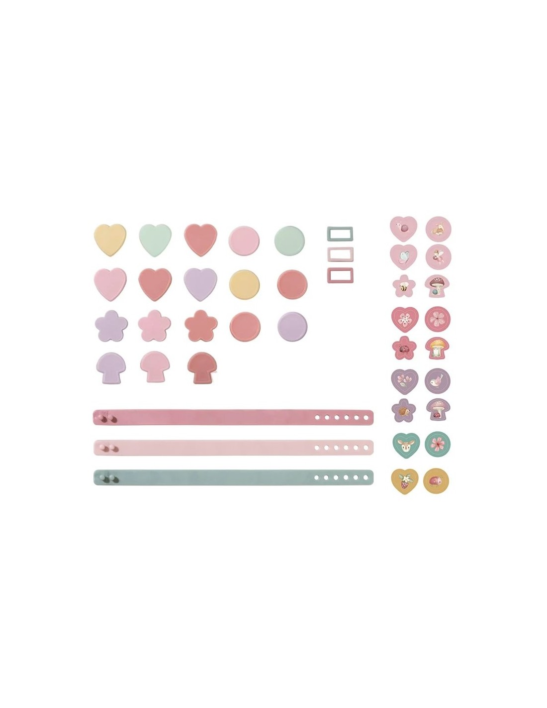 Divertido set creativo de la colección Fairy Garden para que los más pequeños diseñen y personalicen sus propias pulseras. Incluye pulseras, abalorios y pegatinas, fomentando la creatividad, la motricidad fina y la imaginación. Ideal como regalo para niños y niñas.