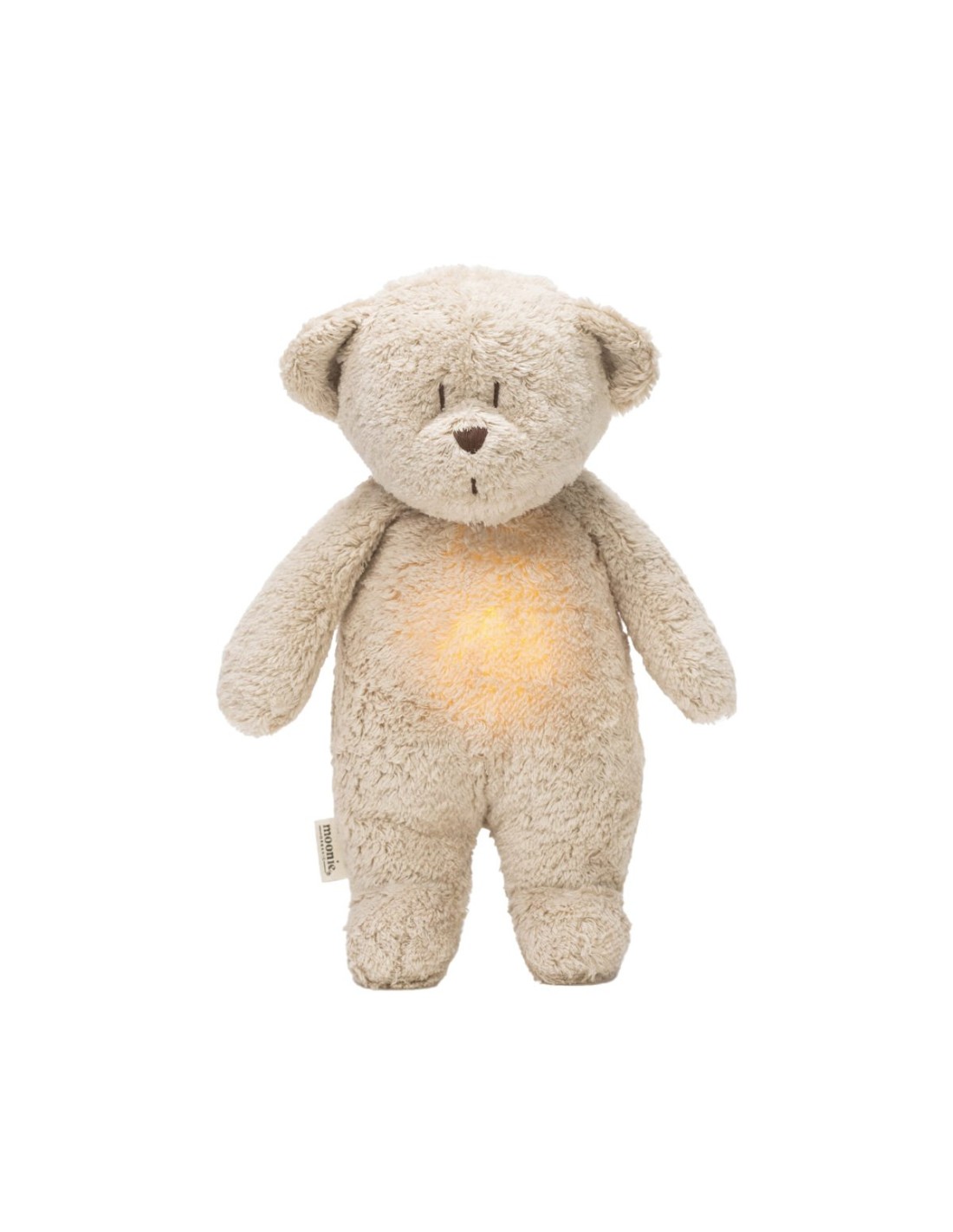 El Peluche Luz-Sonido Oso Orgánico Moonie 2.0 Caramel pertenece a la nueva generación de peluches diseñados para acompañar al bebé desde sus primeros días de vida. Integra sonidos reales de la naturaleza, melodías relajantes y luz LED multicolor para crear un entorno calmante que favorece el descanso.