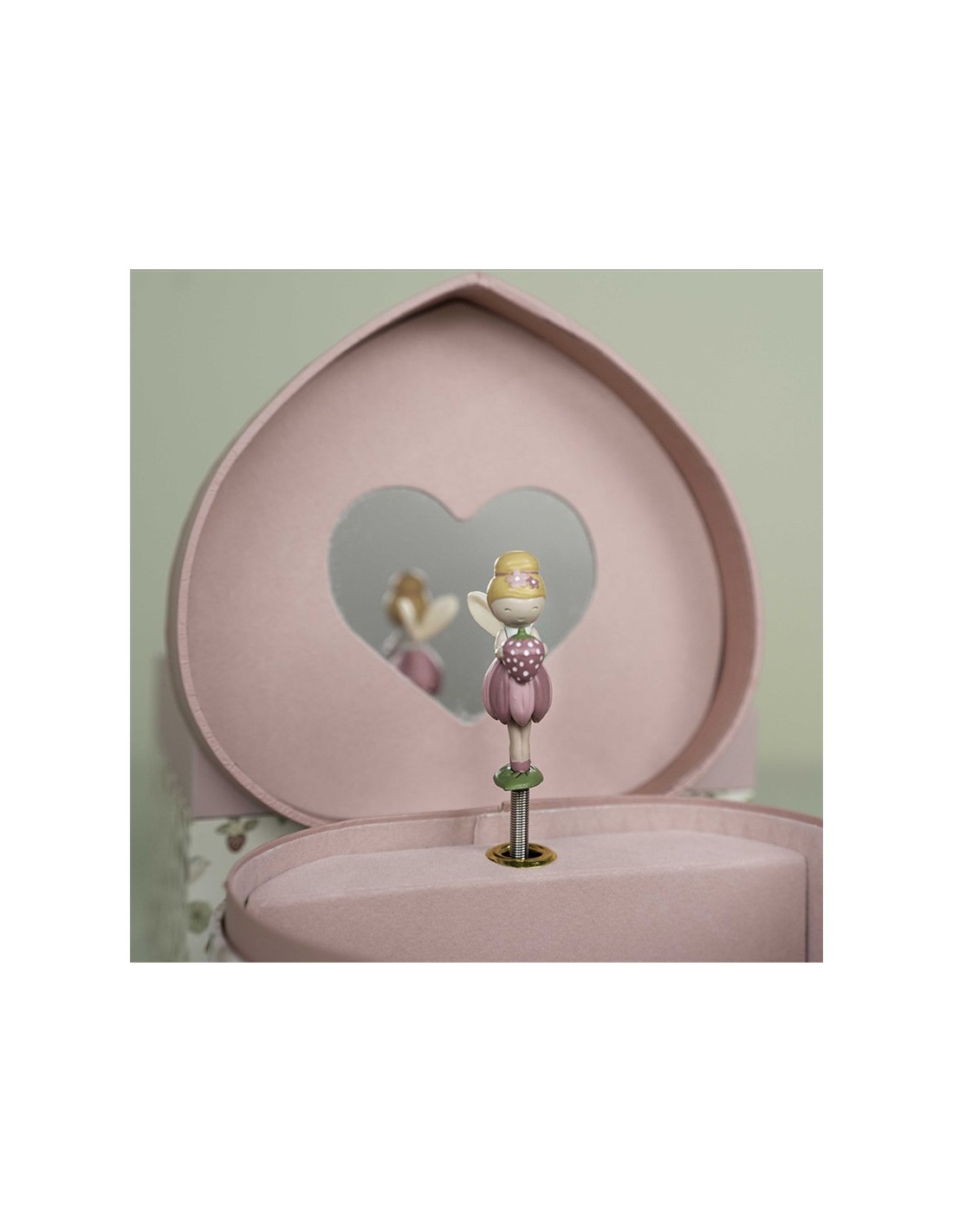 Precioso joyero musical con forma de corazón de la colección Fairy Garden. Incluye una delicada figura de hada que gira al sonar la música, ideal para guardar pequeños tesoros. Un artículo decorativo y funcional, perfecto como regalo para niños y niñas.