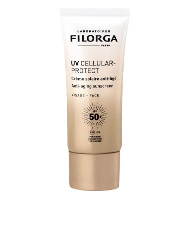 Filorga UV Cellular-Protect SPF50+ es un protector solar facial antiedad que combina filtros UV de amplio espectro con un complejo avanzado de activos para proteger, corregir y revitalizar la piel. Su fórmula contiene un 8% de ingredientes antiedad, incluyendo péptidos reafirmantes, ácido hialurónico acetilado, niacinamida antimanchas y el exclusivo complejo NCEF para una acción global revitalizante. Además, incorpora aceite de karanja y extractos de microalgas que potencian la protección UVA. Su textura es ligera, de rápida absorción y con un acabado totalmente invisible, ideal para usar a diario bajo cualquier rutina.