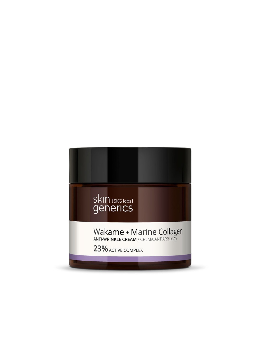 Crema que concentra 23% de activos antiarrugas que garantizan su efectividad tras su uso continuado. El extracto de wakame se obtiene de una alga japonesa que reduce las arrugas y líneas de expresión gracias a la estimulación de la síntesis de colágeno, elastina y ácido hialurónico. El ácido hialurónico de bajo peso molecular, el colágeno y la jojoba aportan hidratación en profundidad y elasticidad. La vit. E protege de los radicales libres y tiene propiedades calmantes. La trehalosa hidrata y ayuda a regular el pH de la piel.