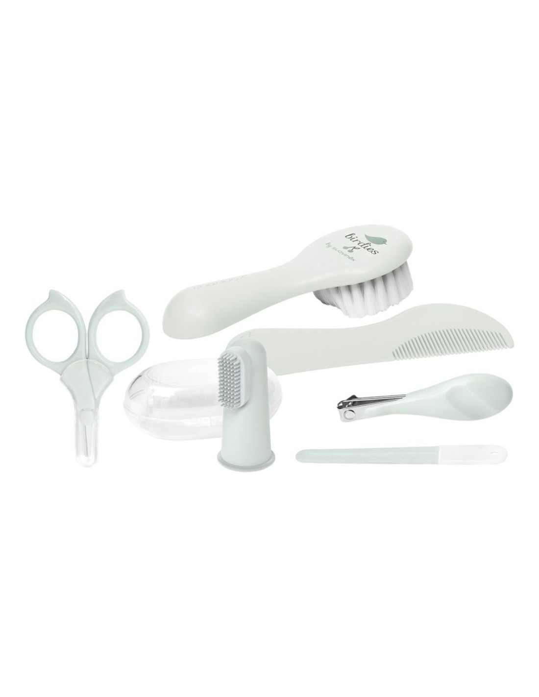 · Cepillo dental de dedal: de suave silicona, su forma de dedal está pensada para introducir el dedo y limpiar suavemente las encías y primeros dientes del bebé. Con cajita higiénica incluída.