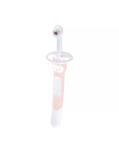 El MAM Training Brush con la característica especial del mango extralargo permite a los adultos ayudar a su bebé a cepillarse los dientes, guiando suavemente el cepillo para asegurarse de limpiar todos los dientes correctamente.