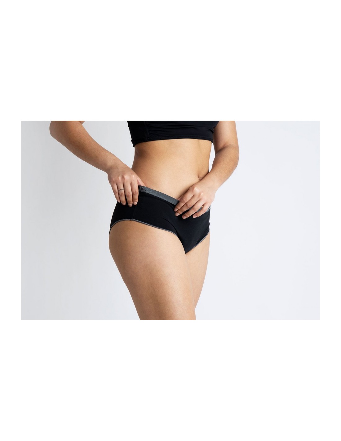 Composición: 1.Capa exterior: 65% algodón, 35% elastano / 2.Capas intermedias (sólo en el puente): Fibras naturales y poliéster. No contiene plástico (libre de PUL) / 3.Capa interior (sólo en el puente): 100% algodón orgánico / 4.Cinturilla: 70% poliamida, 30% elastano.