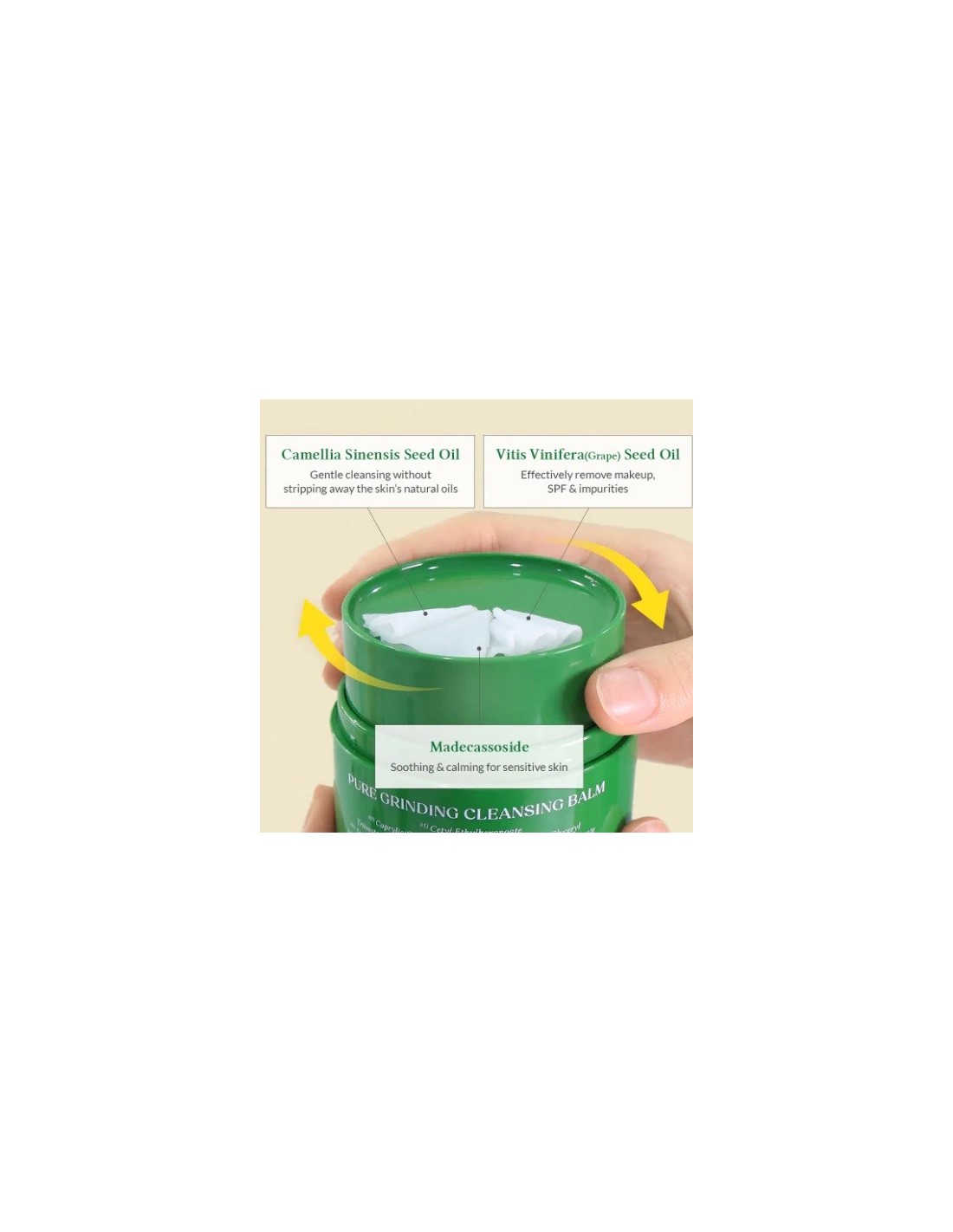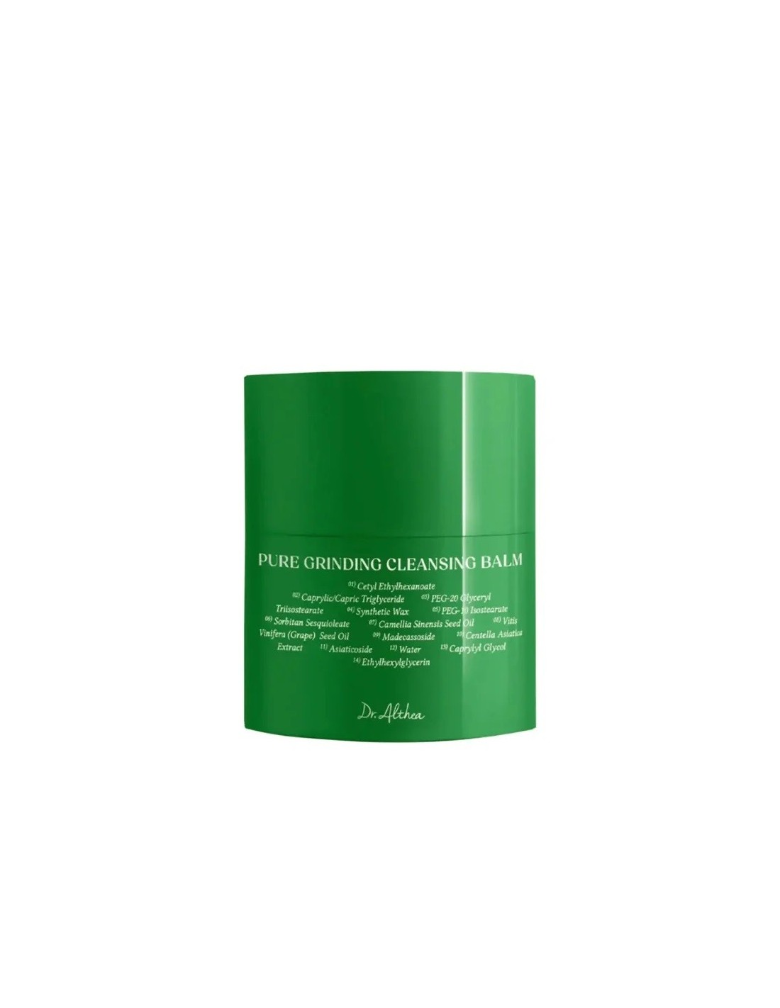 El Dr. Althea Pure Grinding Cleansing Balm es un bálsamo limpiador suave ideal para pieles sensibles, aunque apto para todo tipo de piel. Su fórmula combina ingredientes naturales de alta calidad, como el aceite de semilla de Camellia Sinensis y Vitis Vinifera (aceite de semilla de uva), que nutren y acondicionan la piel mientras eliminan impurezas y maquillaje. Contiene madecassoside y extracto de centella asiática, conocidos por su efecto calmante, que ayudan a reducir rojeces e irritaciones. Las partículas de Grinding Powder proporcionan una exfoliación suave, removiendo células muertas y limpiando los poros sin resecar la piel. El resultado es un rostro limpio, suave y radiante, con sensación de frescura y confort.