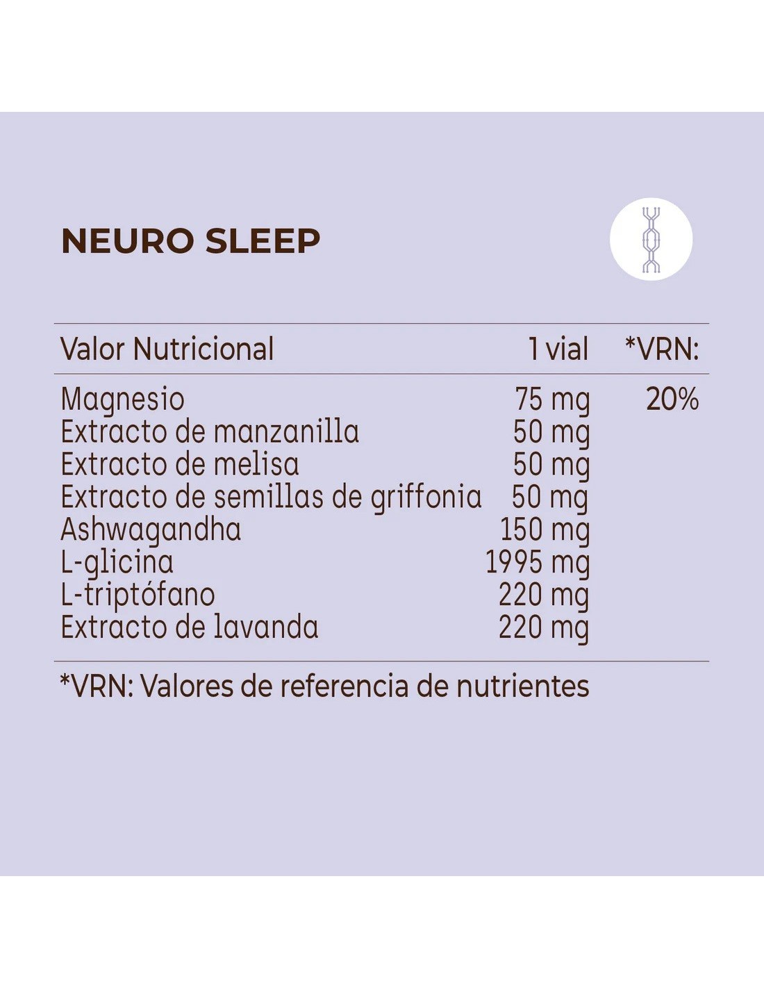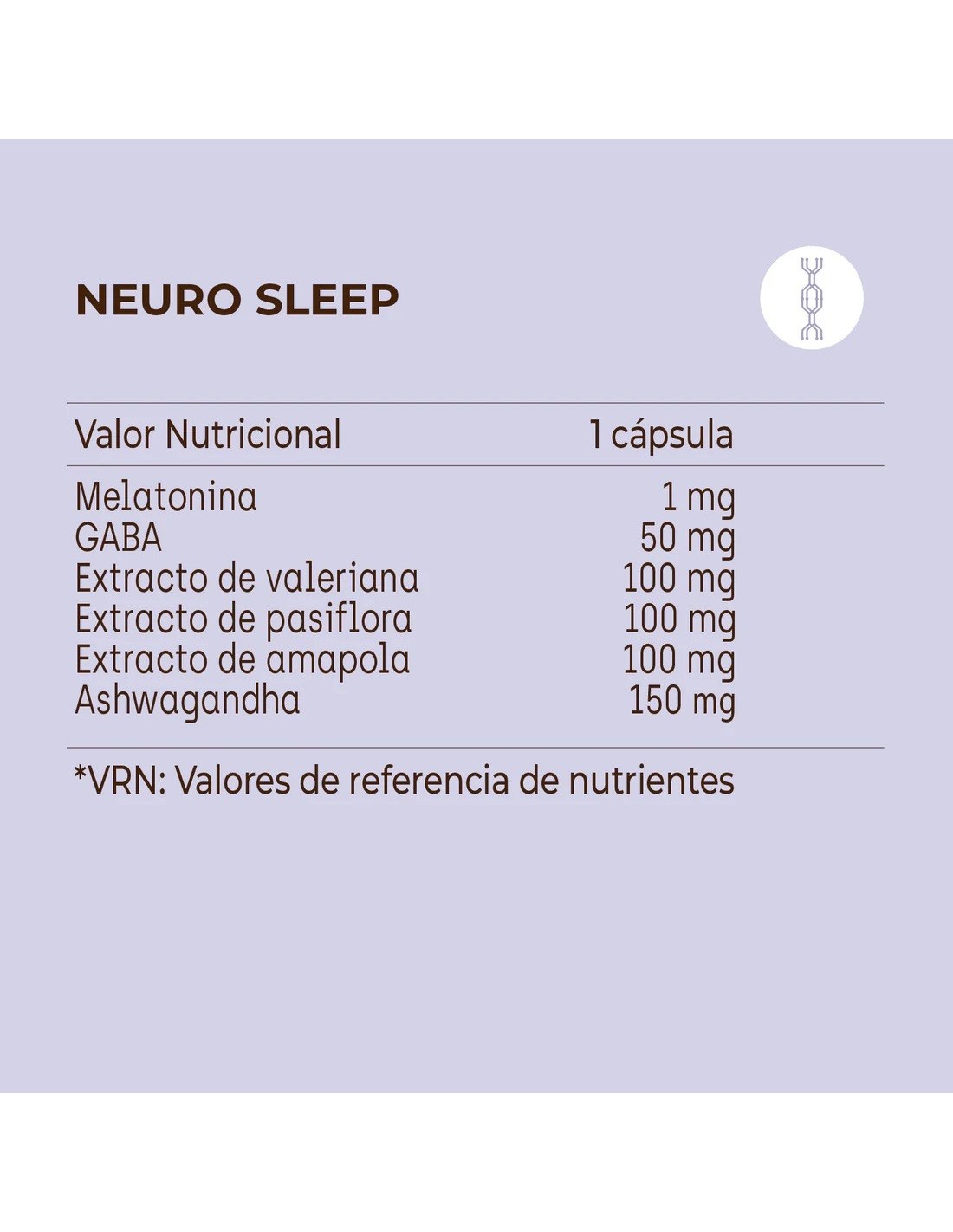 NEURO SLEEP es un protocolo que combina ashwagandha, triptófano, magnesio, glicina y 7 extractos vegetales de máxima pureza para ayudar a conciliar el sueño y mantenerlo toda la noche, mejorar la resistencia al estrés, favorecer la memoria y el aprendizaje, disminuir el cansancio y aportar vitalidad.