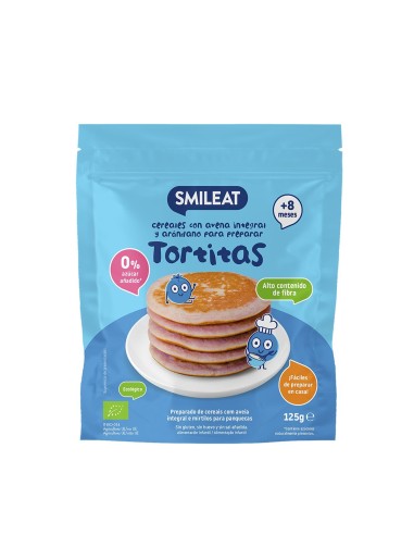 Mezclar 4 cucharadas de producto con 50 ml de bebida (leche de vaca, materna, fórmula, agua o bebida vegetal) y 1 cucharadita de aceite para formar una tortita. Recomendamos ajustarlo según sea necesario. Mezclar hasta conseguir una masa consistente y dejar reposar un minuto. Cocina en una sartén caliente a fuego medio hasta que aparezcan burbujas o hasta que se dore. Repetir por el otro lado y listo.