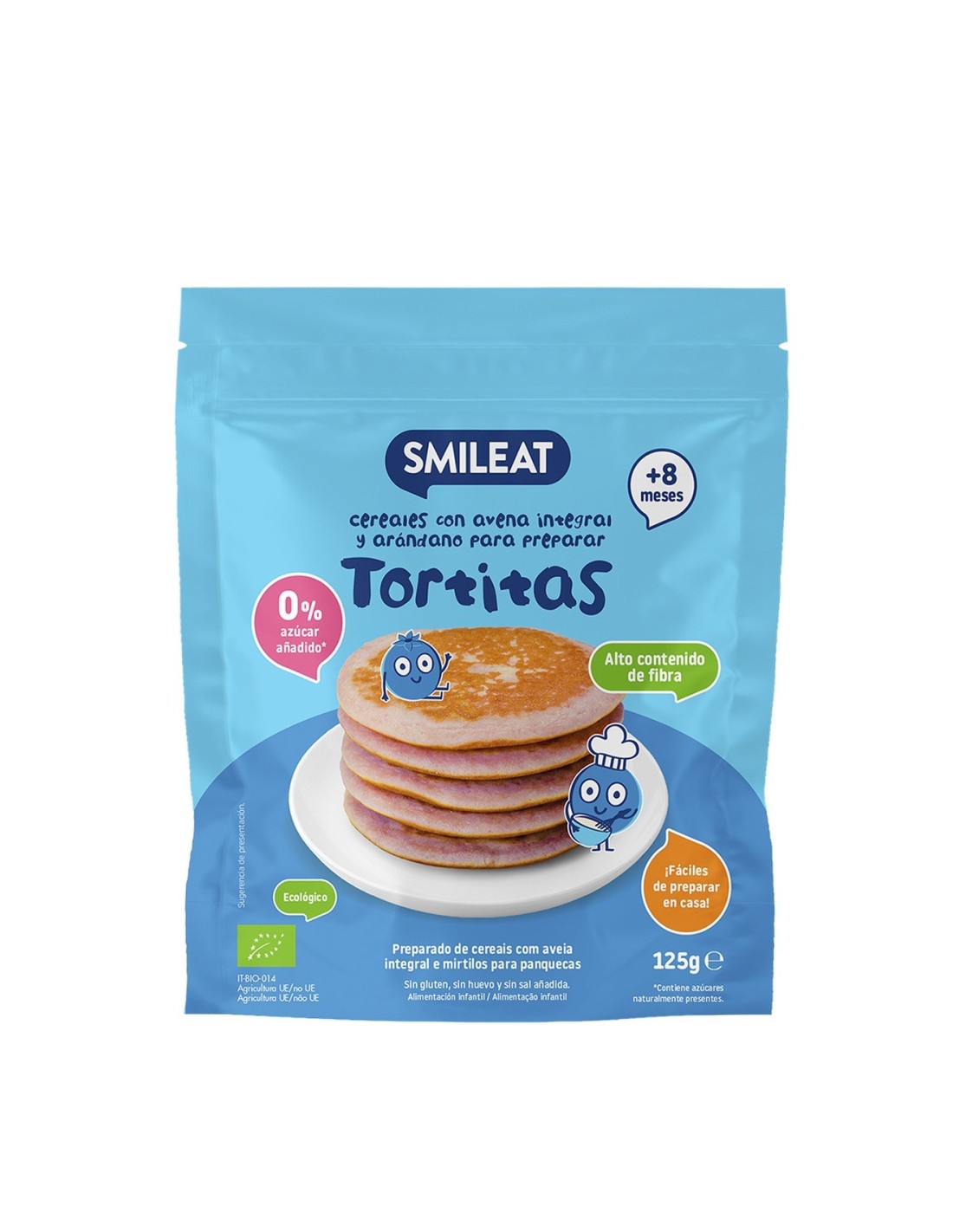 Alimento infantil a base de cereales. Mezcla en polvo para tortitas con avena integral y arándanos