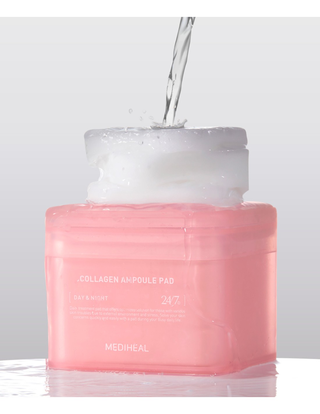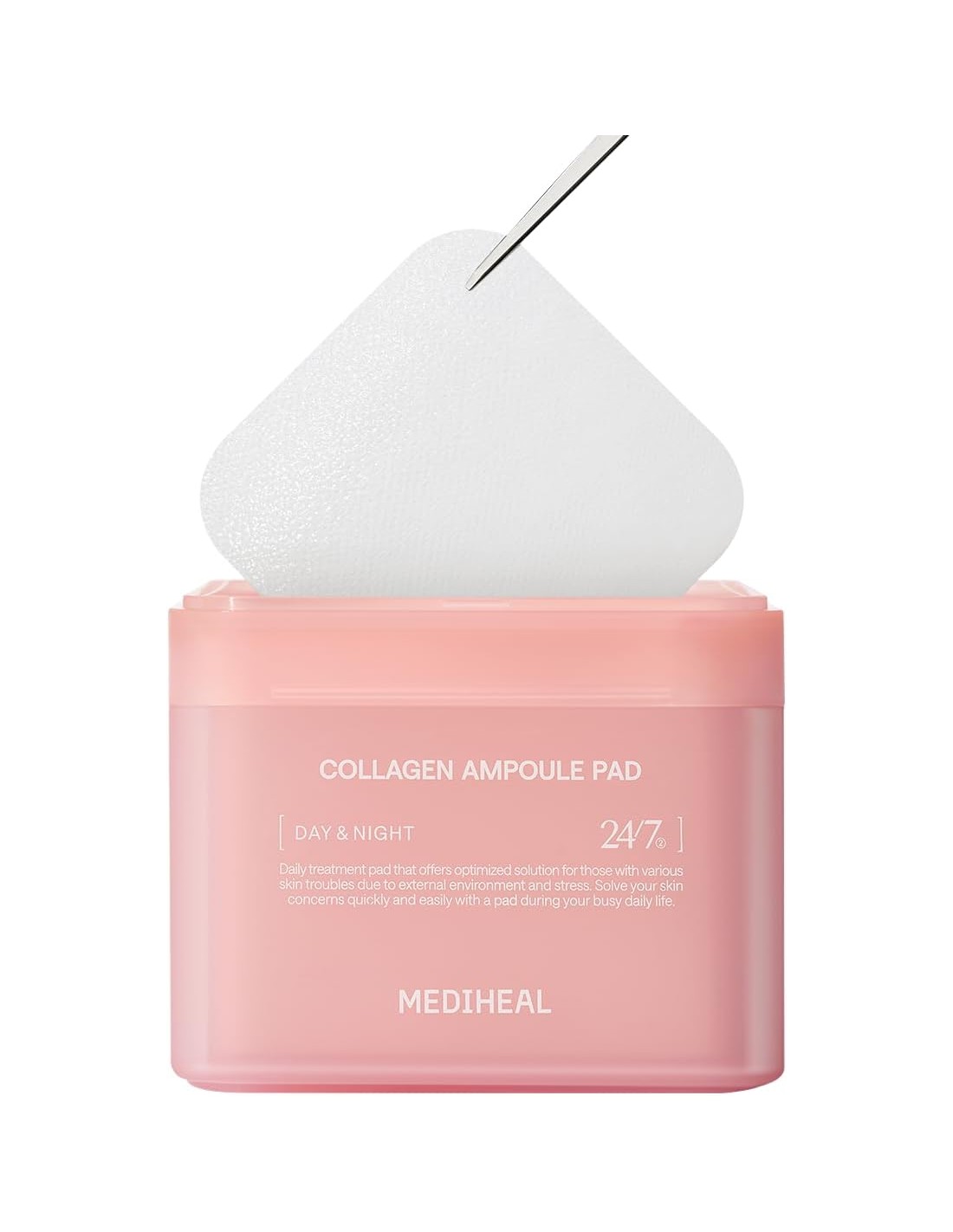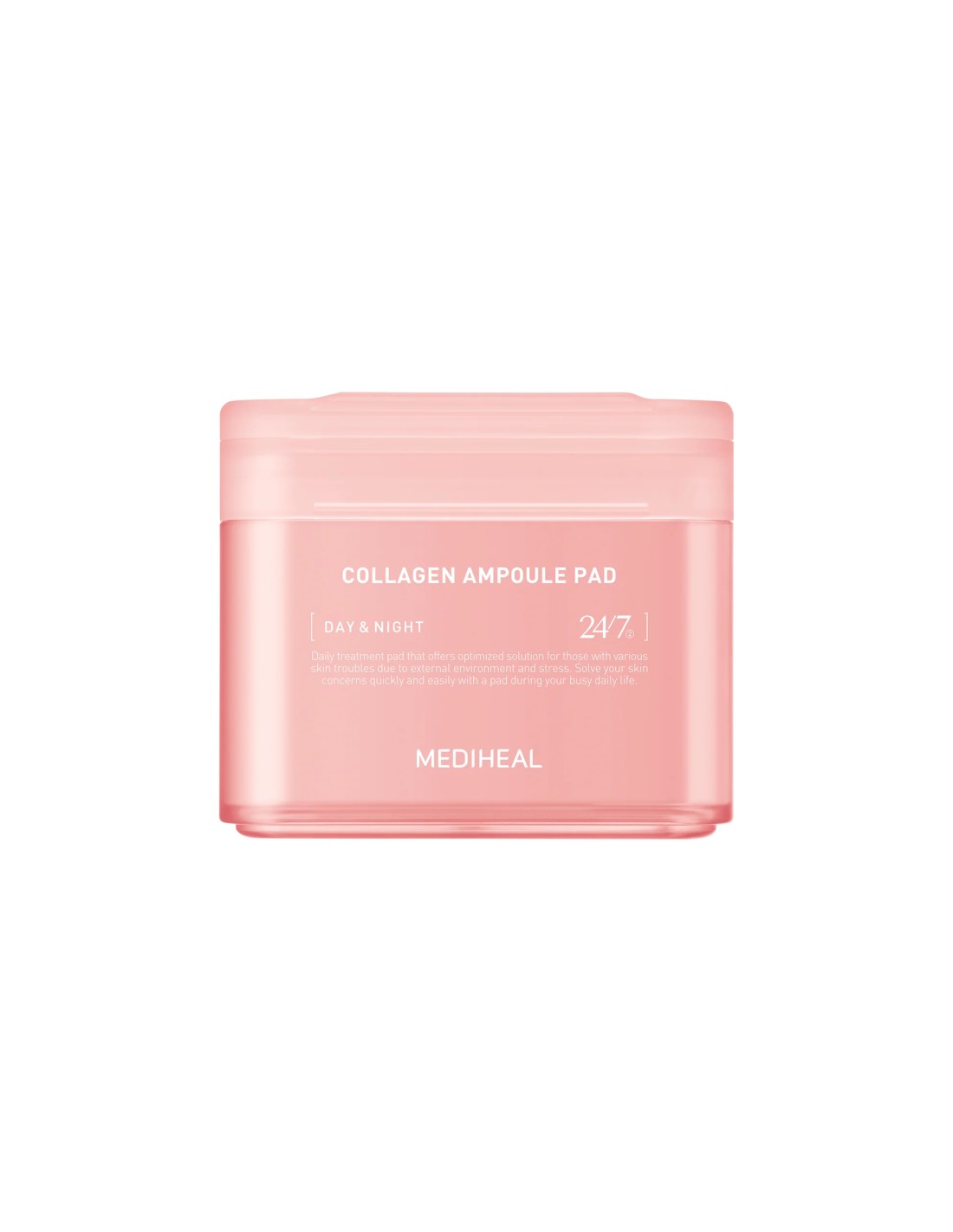 Mediheal Collagen Ampoule Pad es una innovadora ampolla de colágeno en formato almohadilla que combina los beneficios de un tónico facial con el poder reafirmante de una esencia concentrada. Formulado con el exclusivo complejo CollagenFactor™ y un sistema de administración en liposomas, este producto mejora la firmeza, elasticidad y luminosidad de la piel.