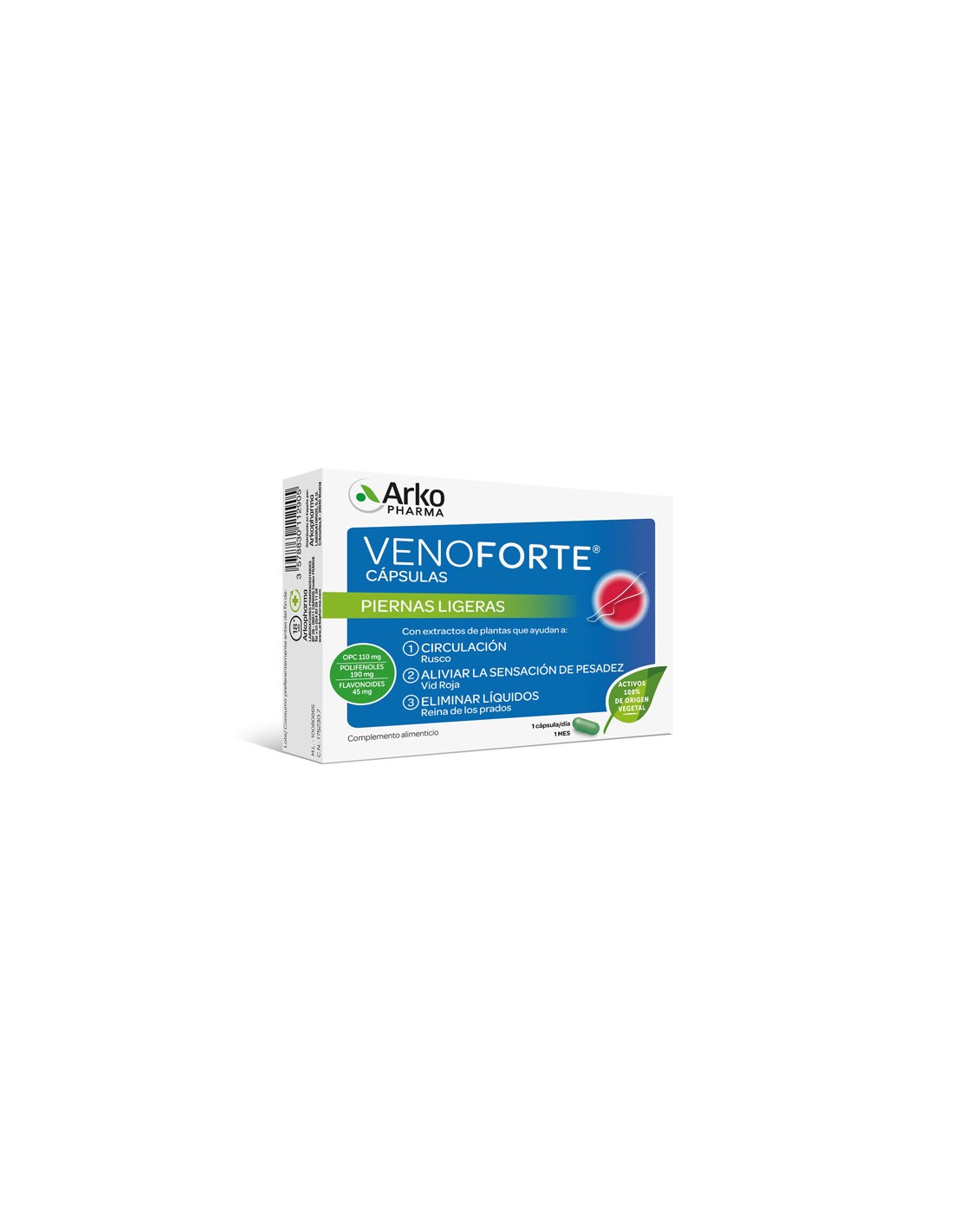 Venoforte® Cápsulas Piernas Ligeras es un complemento alimenticio a base de plantas y vitamina B2, formulado para ayudar a aliviar la pesadez, hinchazón y cansancio en las piernas. Favorece la circulación y el bienestar venoso, proporcionando una sensación de ligereza y confort.