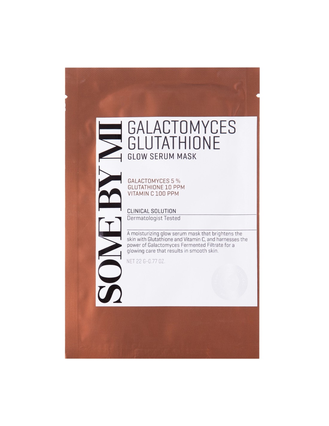 La Galactomyces Glutathione Glow Serum Mask de Some By Mi es una mascarilla de biocelulosa altamente iluminadora que revitaliza la piel apagada desde la primera aplicación. Formulada con Galactomyces Ferment (50,029 ppm), un fermento premium rico en minerales y aminoácidos, aporta un brillo natural, mejora la textura y refina los poros. El Glutatión (10,89 ppm) y la Niacinamida trabajan juntos para aclarar el tono, unificar la piel y aportar una luminosidad visible. La mezcla de complejo de 10 tipos de ácido hialurónico, extractos botánicos (arroz, manzana, loto, cerezo, brócoli) y péptidos como Copper Tripeptide-1, hidratan profundamente y mejoran la elasticidad de la piel.