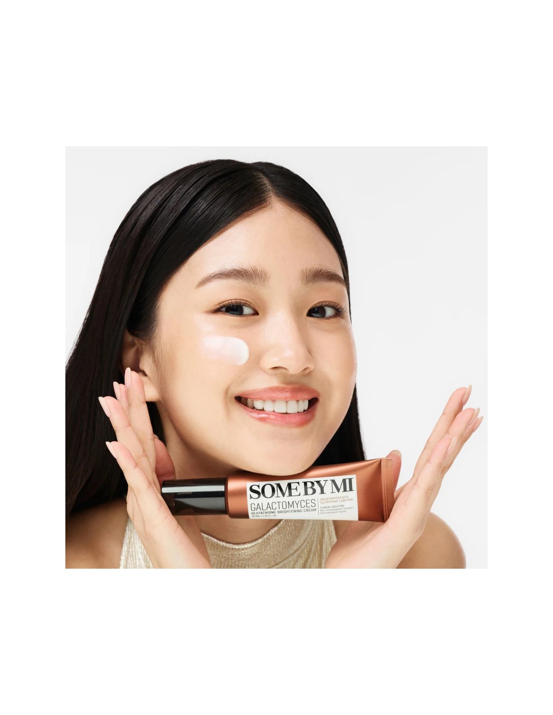 Some By Mi Galactomyces Glutathione Brightening Cream es una crema iluminadora que combina extracto fermentado de galactomyces, vitamina C y glutatión para unificar el tono de la piel, reducir manchas y devolver su luminosidad natural. Su fórmula ligera hidrata profundamente, mejora la textura y calma la piel, dejando un acabado radiante sin sensación pesada.