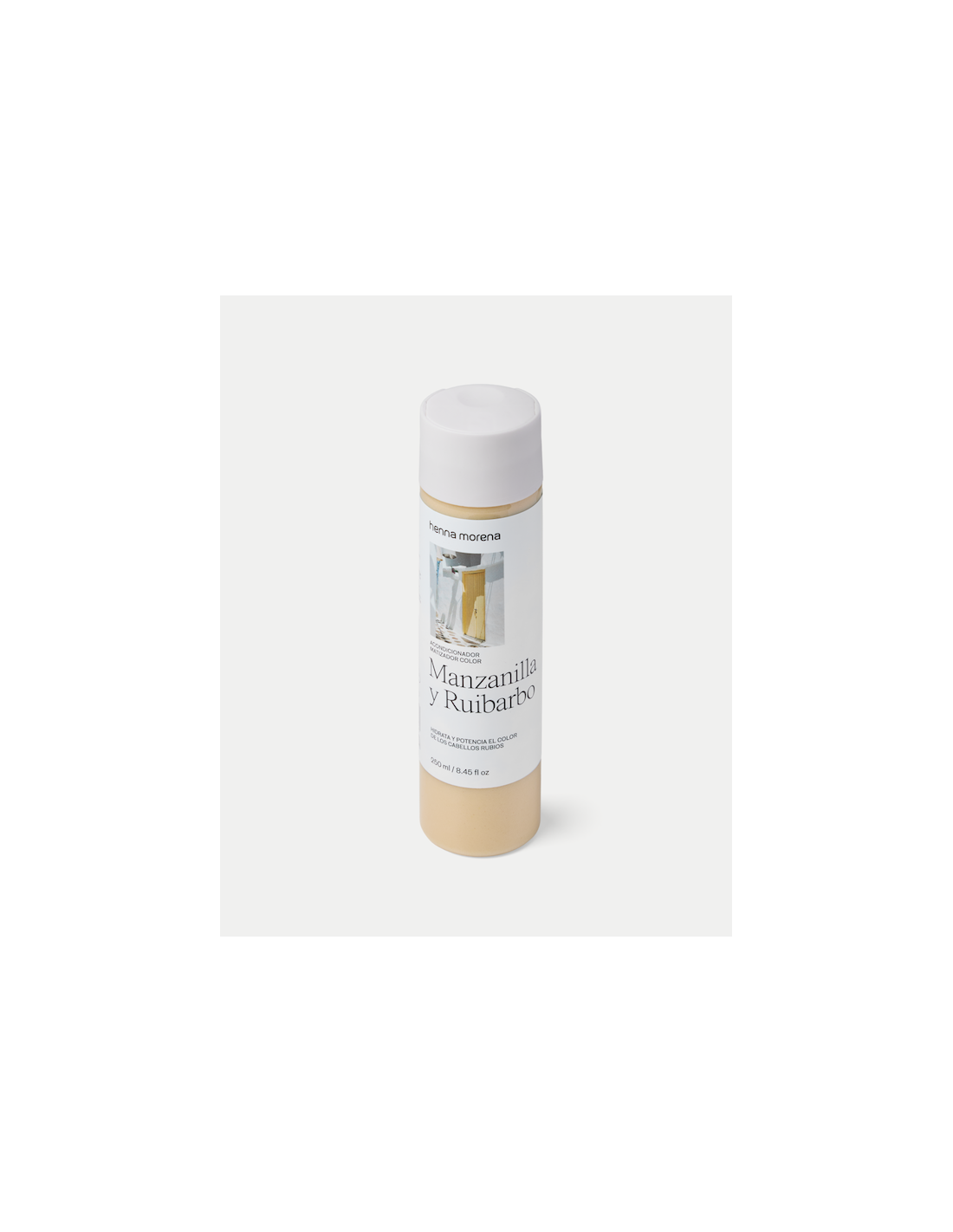 Proporciona una capa alrededor del cabello que lo protege de los rayos ultravioleta, potenciando el tono dorado de los cabellos rubios gracias a la Manzanilla y al Ruibarbo.
