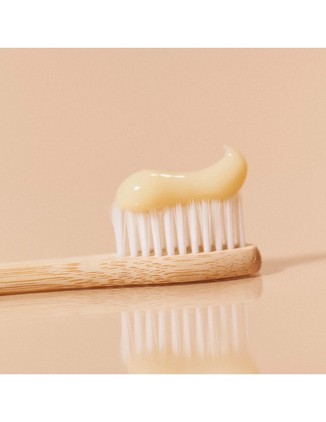- Refuerza y remineraliza: La nano-hidroxiapatita ayuda a reparar el esmalte, reducir la sensibilidad y mantener los dientes fuertes.