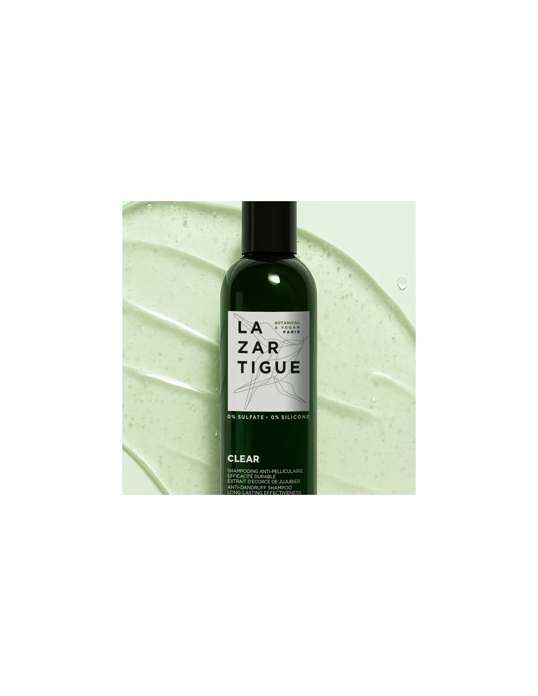 El Champú Clear Anticaspa de Lazartigue está especialmente formulado para cueros cabelludos secos con caspa. Su fórmula vegana, sin sulfatos ni siliconas y con un 94 % de ingredientes de origen natural, elimina eficazmente la caspa seca mientras hidrata y calma la piel, aliviando tirantez y picor.