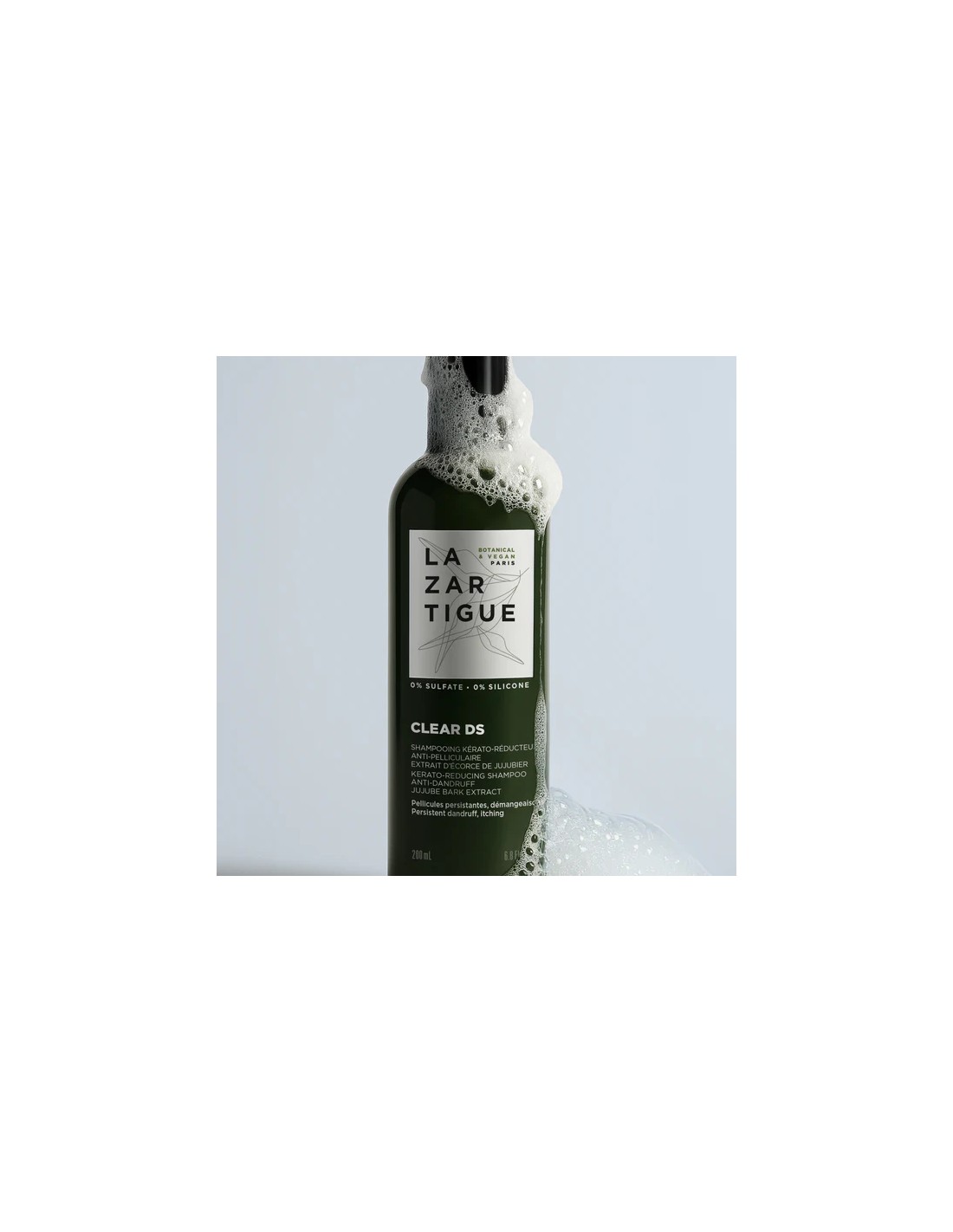El champú anticaspa CLEAR DS de Lazartigue está formulado para cueros cabelludos con caspa recurrente y sensibilidad. Su fórmula vegana, sin sulfatos ni siliconas, elimina la caspa persistente, purifica el cuero cabelludo y alivia el picor intenso desde la primera aplicación.