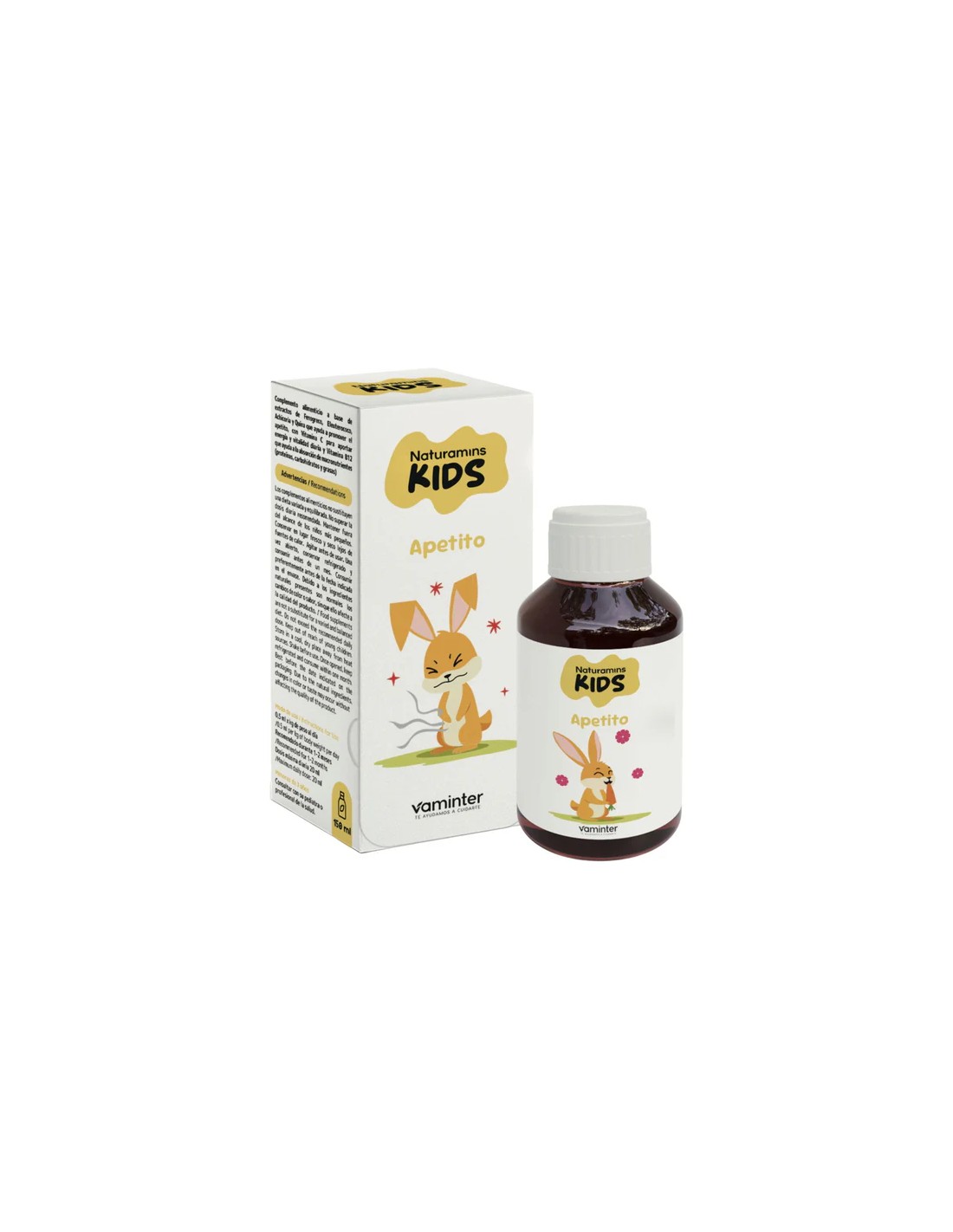 Naturamins Kids Apetito es un complemento alimenticio formulado para estimular de manera natural el apetito infantil gracias a su combinación de extractos vegetales como fenogreco, eleuterococo, achicoria y quina. Además, incorpora vitamina C para mejorar la energía diaria y vitamina B12, esencial para la correcta absorción de macronutrientes. Su contenido en fibra prebiótica Sunfiber® ayuda a mantener un buen equilibrio digestivo. Su agradable sabor cookie facilita la toma diaria en niños a partir de 1 año.