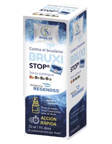 BRUXISTOP® es un spray sublingual diseñado para el tratamiento del bruxismo con un plan de 3 meses de tratamiento. Su administración sublingual permite una rápida absorción de los ingredientes activos, ofreciendo un alivio más rápido y duradero para quienes sufren de rechinamiento nocturno y tensión mandibular.