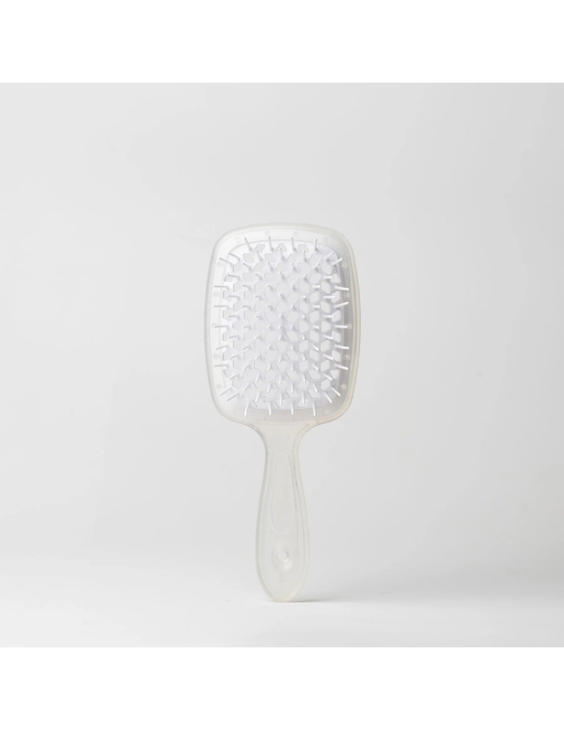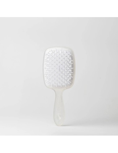 Este cepillo específico para desenredar en mojado está diseñado para evitar tirones, roturas y la electrificación del cabello, siendo especialmente recomendable para cabellos rizados. Su uso es ideal para todo tipo de cabellos, ya que previene daños mecánicos durante el desenredo. Con un tamaño de 20,5 cm, es compacto y fácil de manejar, ofreciendo un cuidado delicado y eficaz para tu cabello.