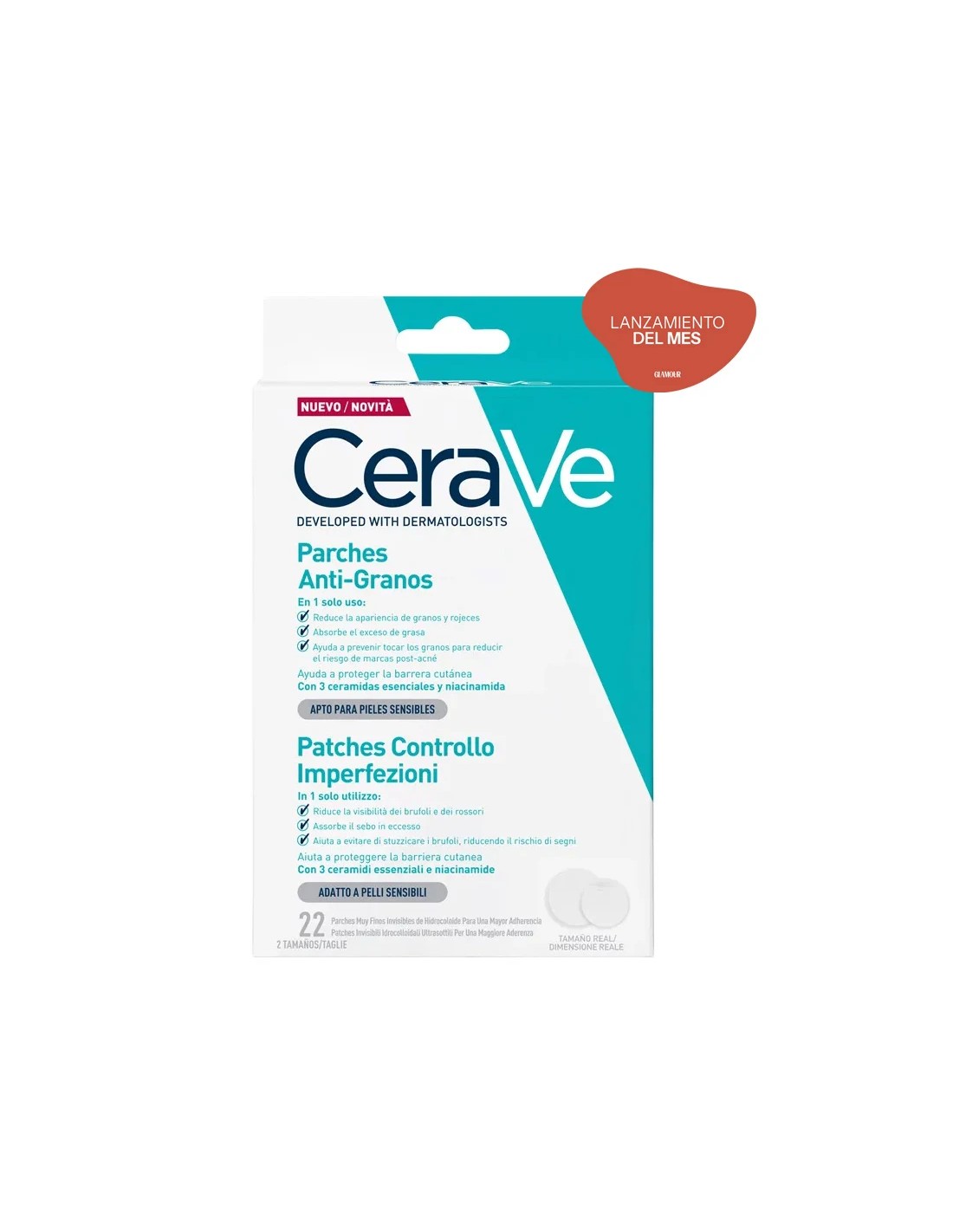Los Parches Anti-Granos de CeraVe son un tratamiento localizado de acción rápida diseñado para reducir imperfecciones visibles, calmar la piel y reforzar la barrera cutánea. Su fórmula combina 3 ceramidas esenciales con niacinamida y la tecnología hidrocoloide, que ayuda a absorber el exceso de sebo y crear un entorno óptimo para la recuperación de la piel.