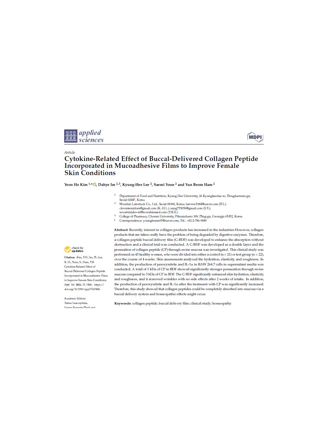 Estudio publicado en Applied Sciences (2021) reporta mejoras en hidratación, elasticidad y microrelieve tras uso de películas orales de colágeno.