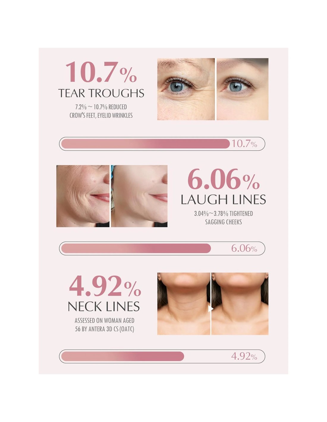 Su fórmula combina ingredientes naturales de alta calidad, aceites nutritivos y potentes antioxidantes que ayudan a proteger la piel frente a agresiones externas. Activos como péptidos, colágeno y ácido hialurónico trabajan en sinergia para mejorar la elasticidad, hidratar intensamente y suavizar visiblemente las arrugas.