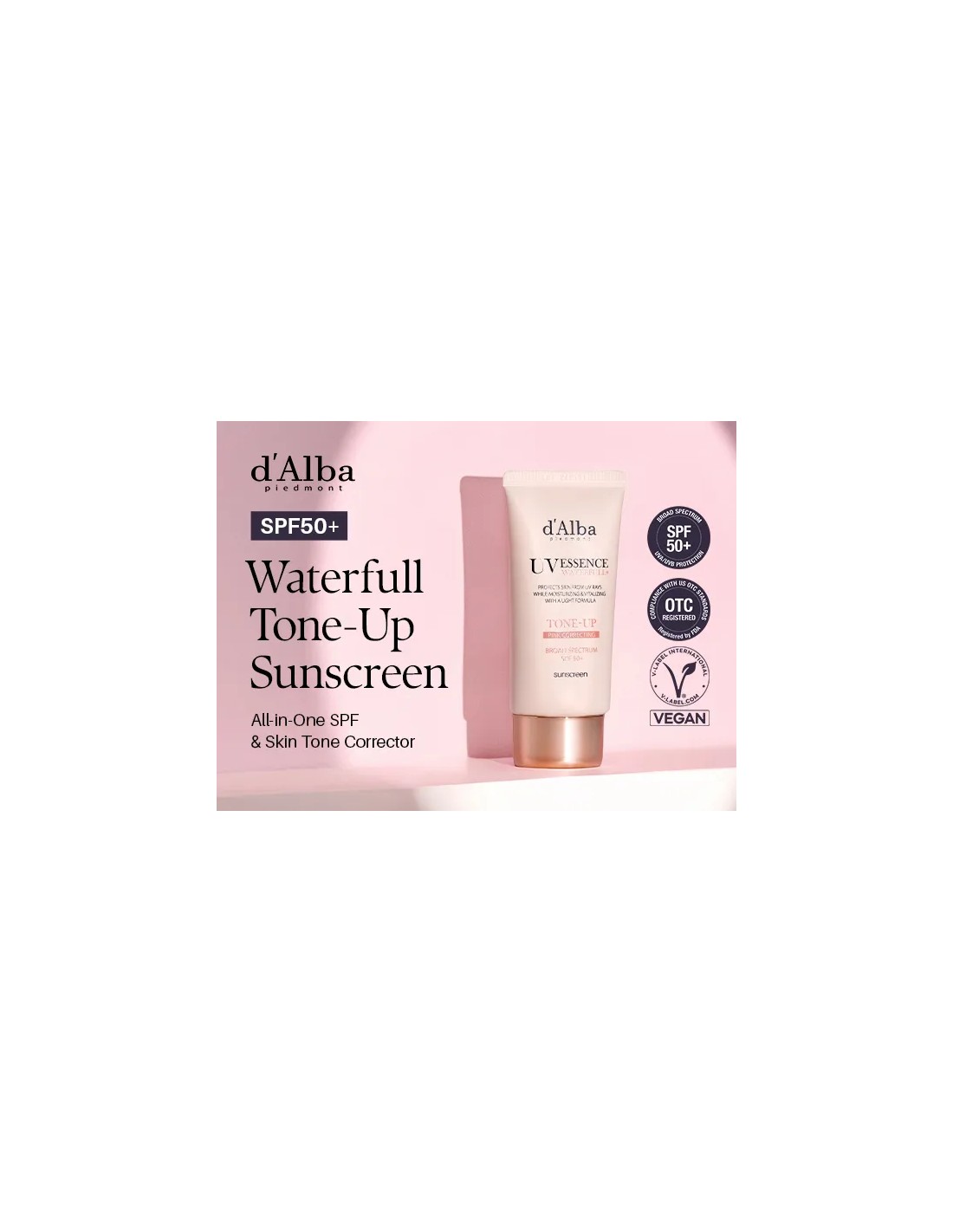 El d'Alba Waterfull Pink Correcting Tone-Up Sunscreen es un innovador protector solar que combina protección avanzada con cuidados dermatológicos para la piel. Su fórmula incluye filtros UV minerales y químicos, garantizando una cobertura SPF50+ PA++++ frente a los rayos UVA y UVB. Enriquecido con extracto de melocotón, centella asiática y niacinamida, proporciona hidratación, calma la piel y corrige el tono, ofreciendo un acabado saludable y luminoso con un sutil matiz rosado.