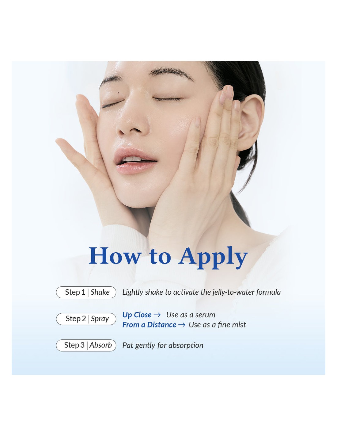 Pulverizar de cerca sobre el rostro para usarla como sérum en bruma.