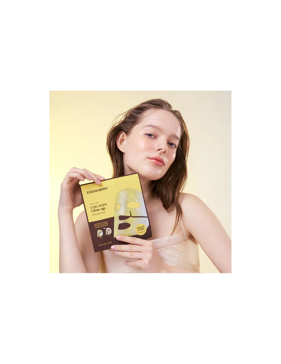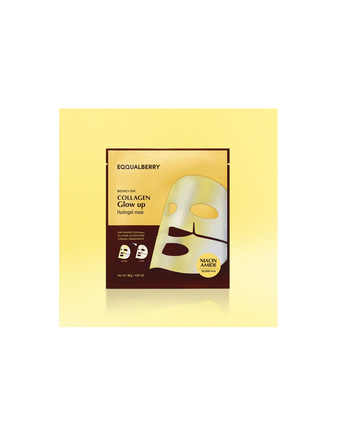 EQQUALBERRY Collagen Glow Up Hydrogel Mask es una mascarilla facial de hidrogel diseñada para hidratar intensamente la piel y aportar un brillo inmediato. Enriquecida con colágeno, ácido hialurónico y péptidos, revitaliza la piel apagada, mejora la elasticidad y ayuda a suavizar las líneas finas. Su textura de hidrogel se adapta perfectamente al contorno del rostro, favoreciendo una absorción óptima de los activos y dejando la piel más firme, luminosa y confortable desde la primera aplicación.