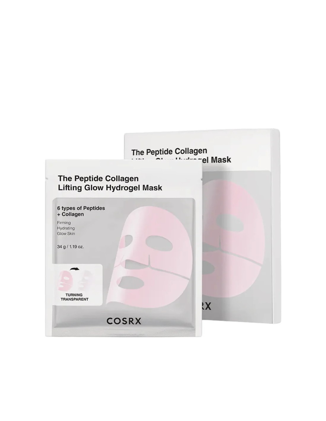 The Peptide Collagen Lifting Glow Hydrogel Mask de COSRX es una mascarilla facial de hidrogel de alto rendimiento diseñada para ofrecer resultados visibles desde la primera aplicación. Su innovadora estructura de hidrogel se adapta perfectamente al rostro y se funde lentamente con la piel, permitiendo una liberación profunda y uniforme de los ingredientes activos.