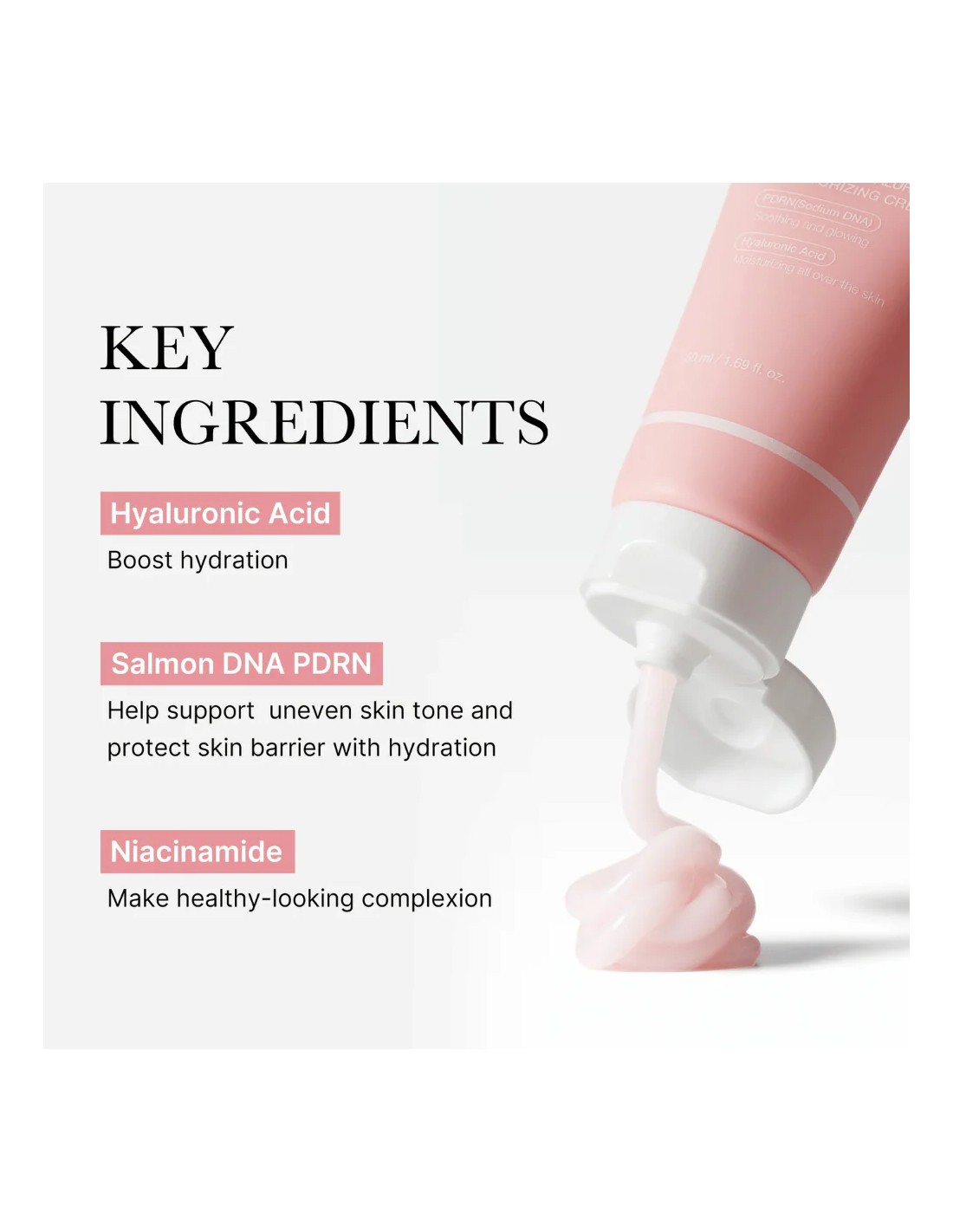 Medicube PDRN Pink Hyaluronic Moisturizing Cream es una crema facial hidratante de textura ligera y sedosa formulada para ayudar a restaurar la hidratación, mejorar la elasticidad y aportar un aspecto más jugoso y luminoso a la piel.