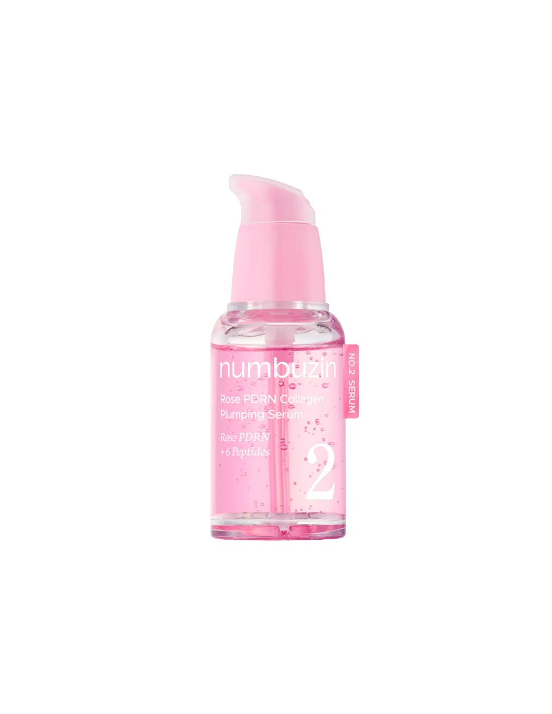 Numbuzin No.2 Rose PDRN Collagen Plumping Serum es un sérum facial de textura ligera formulado para ayudar a mejorar el aspecto de la firmeza, la elasticidad y la luminosidad de la piel. Su fórmula combina Rose PDRN, colágeno y un complejo avanzado de péptidos para contribuir a una piel visiblemente más suave, revitalizada y con efecto relleno.