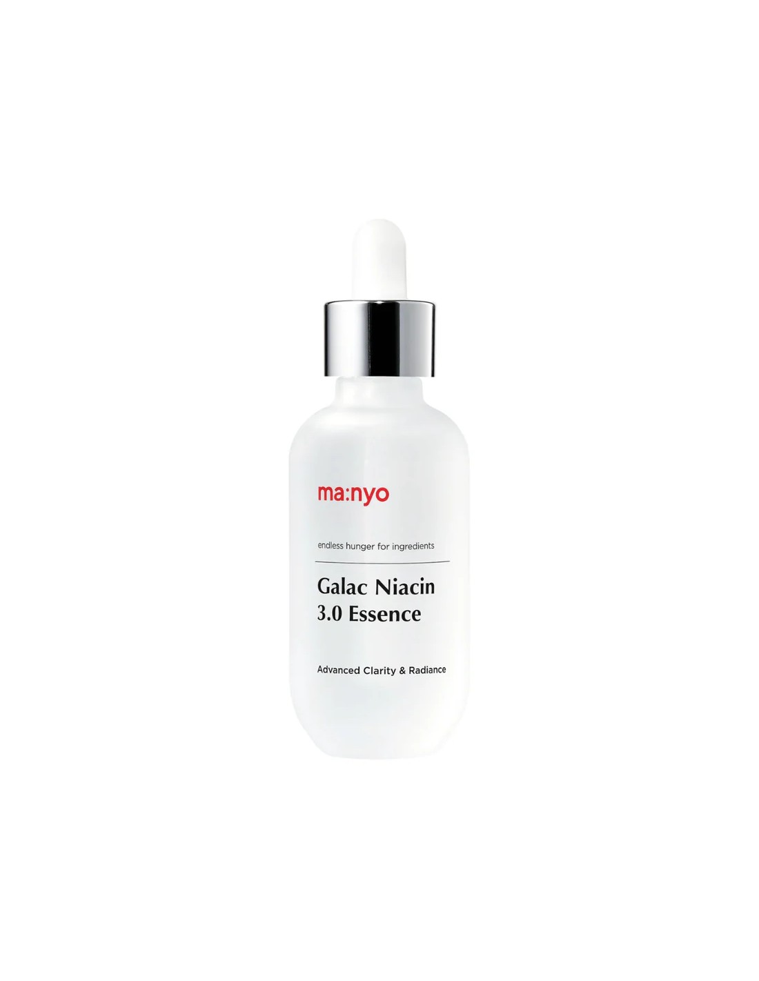 Ma:nyo Galac Niacin 3.0 Essence es una esencia facial formulada para ayudar a mejorar la luminosidad y la textura de la piel. Contiene galactomyces fermentado, un ingrediente nutritivo que ayuda a mantener la hidratación y aporta un aspecto más radiante, y niacinamida (vitamina B3), conocida por su capacidad para uniformar el tono de la piel y mejorar la apariencia de poros dilatados.