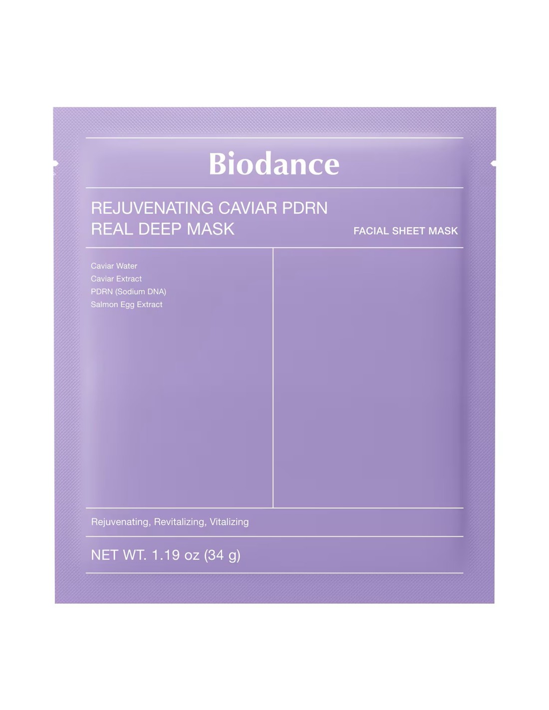 Rejuvenating Caviar PDRN Real Deep Mask es una mascarilla hidrogel moldeada con esencia para proporcionar hidratación. Un uso más prolongado mejora la absorción de los ingredientes beneficiosos y su excelente adhesión con el tiempo la hace adecuada para usar durante la noche o durante 3-4 horas durante el día.