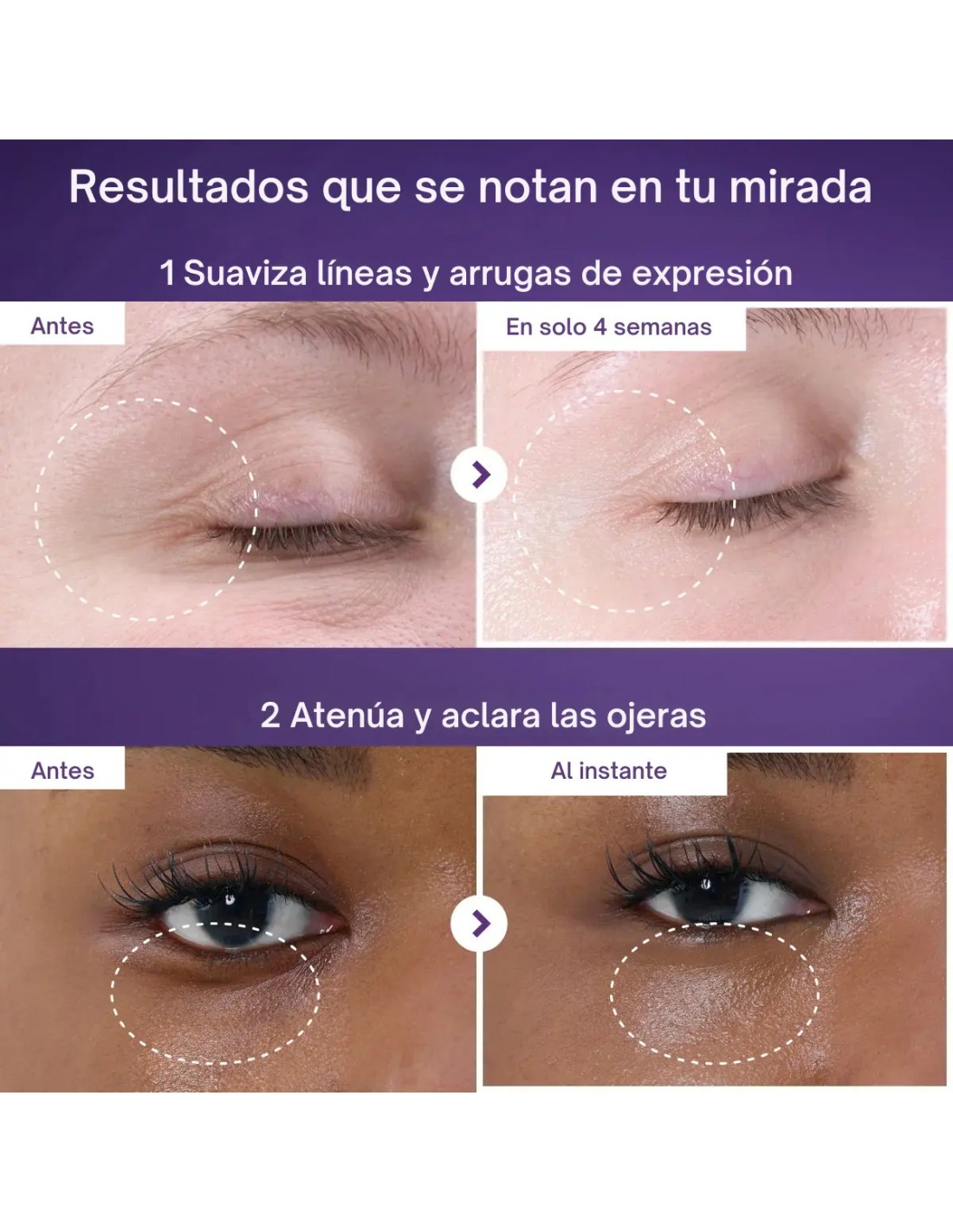 - Mejora visiblemente 5 tipos de arrugas en 4 semanas.