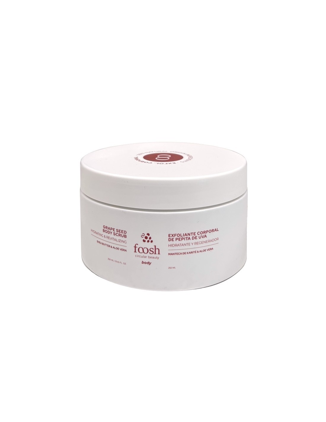 El Exfoliante Corporal Foosh con pepita de uva está formulado para exfoliar suavemente la piel del cuerpo, eliminando células muertas e impurezas y favoreciendo la renovación cutánea.