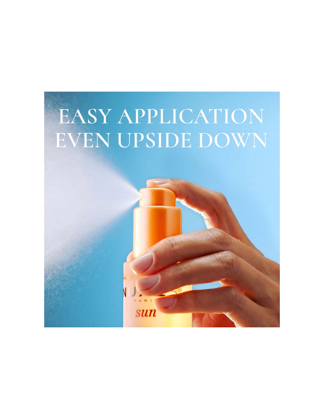Su textura monofásica, fresca y ultraligera, se pulveriza finamente gracias a su dosificador 360°, lo que permite aplicarla fácilmente incluso boca abajo. Se integra rápidamente en la piel proporcionando una sensación de piel desnuda con acabado invisible.