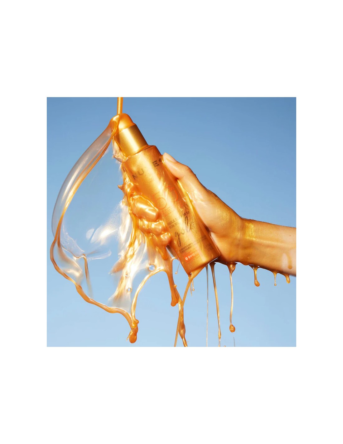 El Aceite Solar Oro Alta Protección SPF50 de NUXE Sun protege la piel del sol mientras aporta un efecto luminoso dorado que realza el bronceado y embellece todos los tonos de piel.