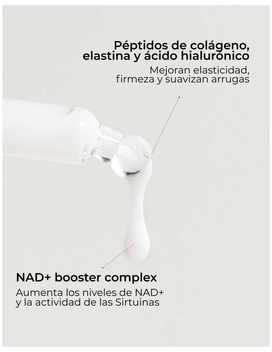 SÉRUM COLLAGEN NAD+ es un sérum facial de tratamiento avanzado que combina colágeno y activos asociados a NAD⁺ para estimular la energía celular, reforzar la función barrera y mejorar la longevidad de la piel. Su acción contribuye a activar la producción de colágeno y elastina, reduciendo la apariencia de arrugas y aportando firmeza y elasticidad.