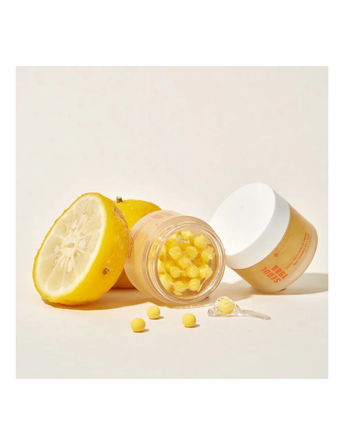 La SEOUL 1988 Capsule Cream: Niacinamide 5% + Yuja de K-SECRET es una crema facial ligera formulada para mejorar la luminosidad de la piel, ayudar a unificar el tono y proporcionar hidratación profunda sin sensación pesada.
