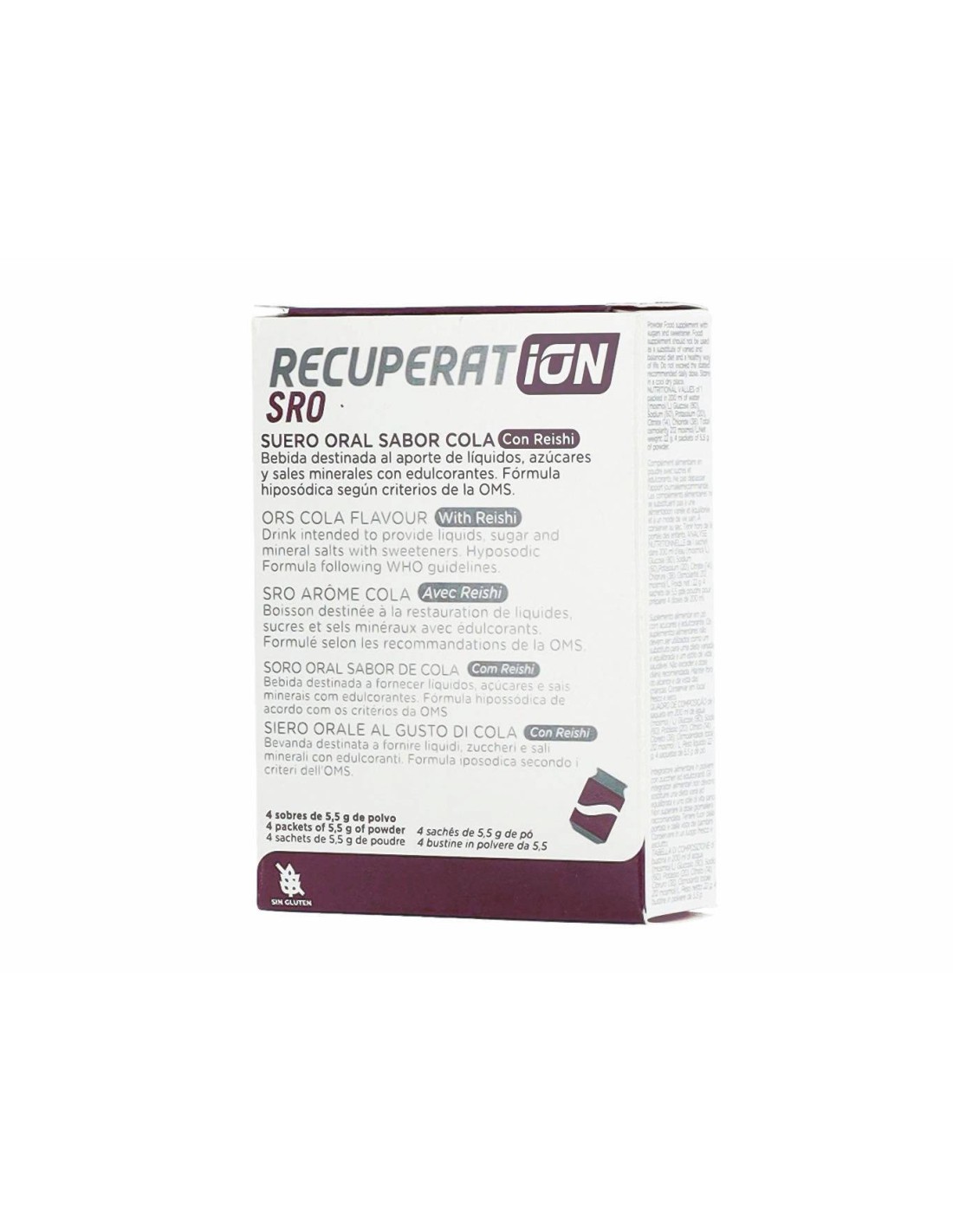 RECUPERATION SRO Suero Oral Sabor Cola es un complemento alimenticio en polvo diseñado para preparar una solución de rehidratación oral que ayuda a prevenir y tratar la deshidratación en casos de diarrea, vómitos o pérdida de líquidos. Su fórmula hiposódica combina sales minerales y azúcares que favorecen una reposición eficaz de electrolitos y líquidos, contribuyendo al correcto funcionamiento del organismo.