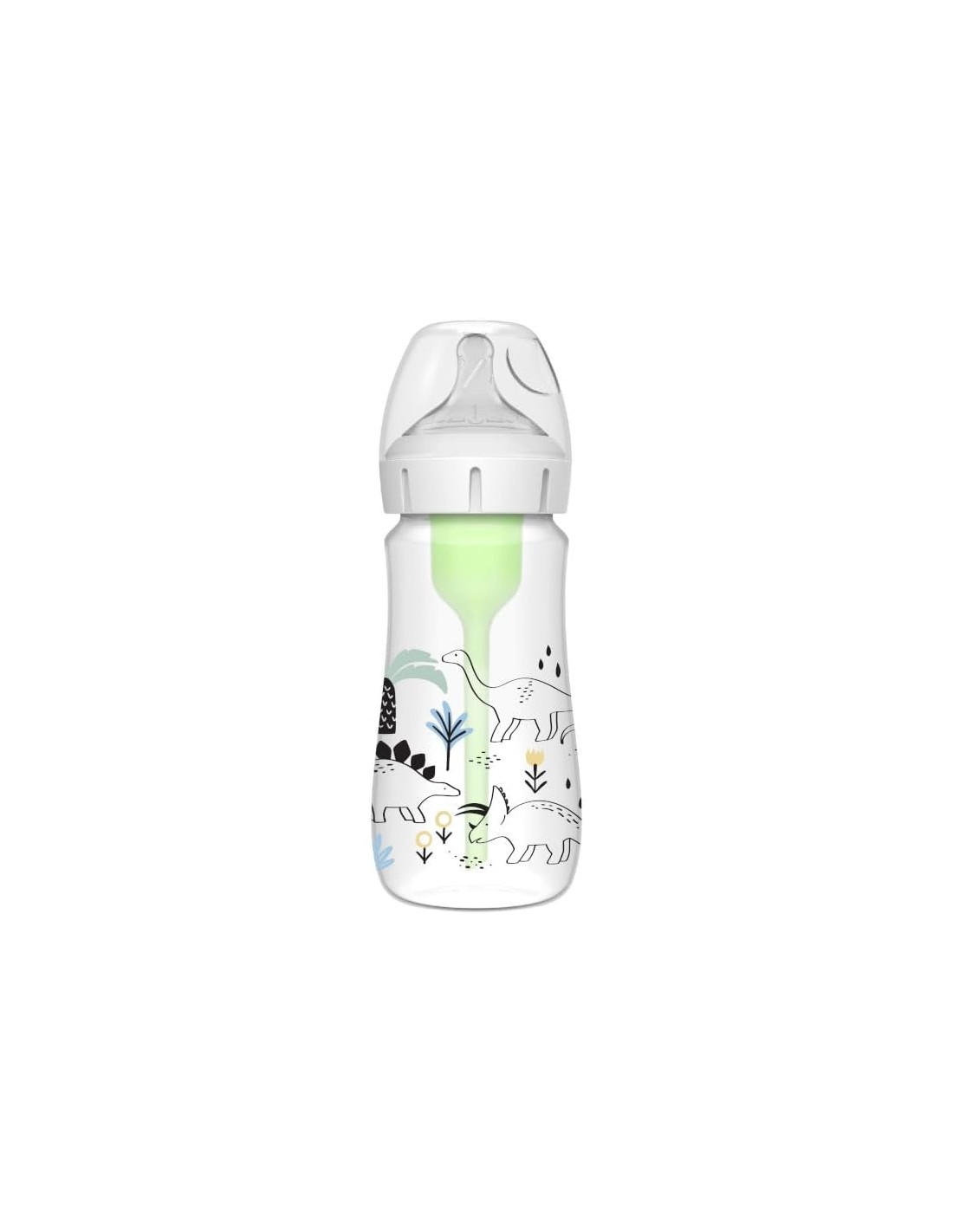 Biberón con sistema de ventilación completa que crea una presión positiva constante durante toda la alimentación, simulando el flujo de la lactancia materna. Gracias a este sistema, la leche y el aire no se mezclan, por lo que el bebé no traga aire durante las tomas, reduciendo los síntomas de los cólicos, gases y eructos.