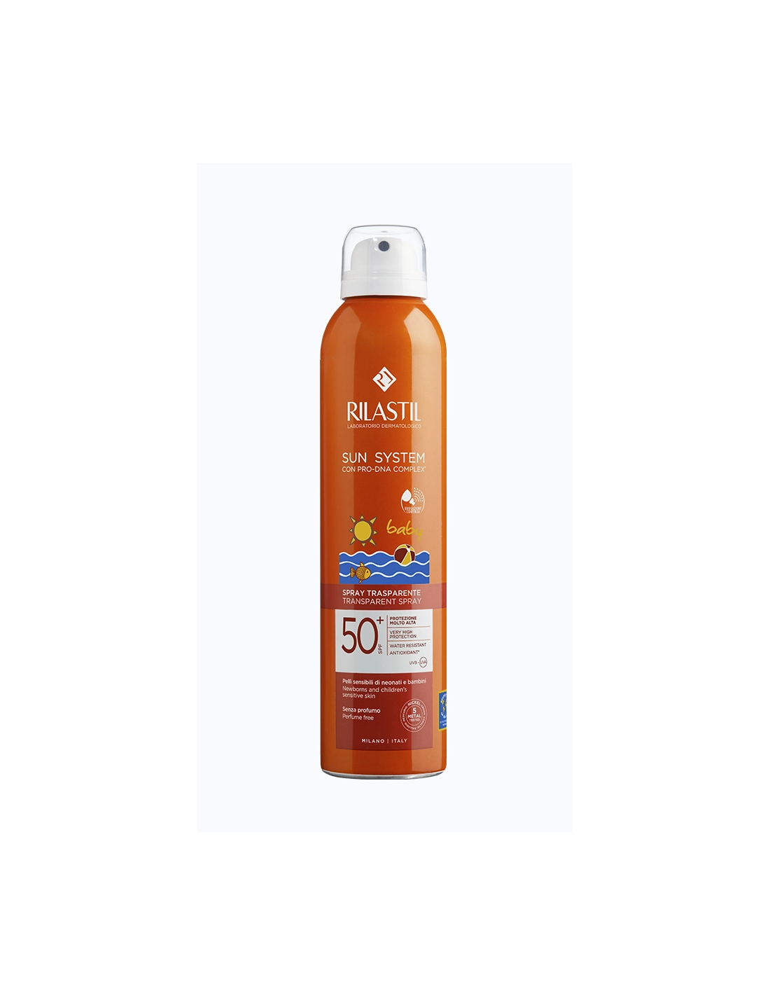 PACK Rilastil Sun System Baby Spray Transparente SPF50+ es un pack de 2 unidades de fotoprotector corporal infantil en formato spray transparente, diseñado para ofrecer una protección solar muy alta con una aplicación práctica y uniforme. Su fórmula ligera se absorbe rápidamente, dejando la piel protegida, hidratada y sin residuos visibles.