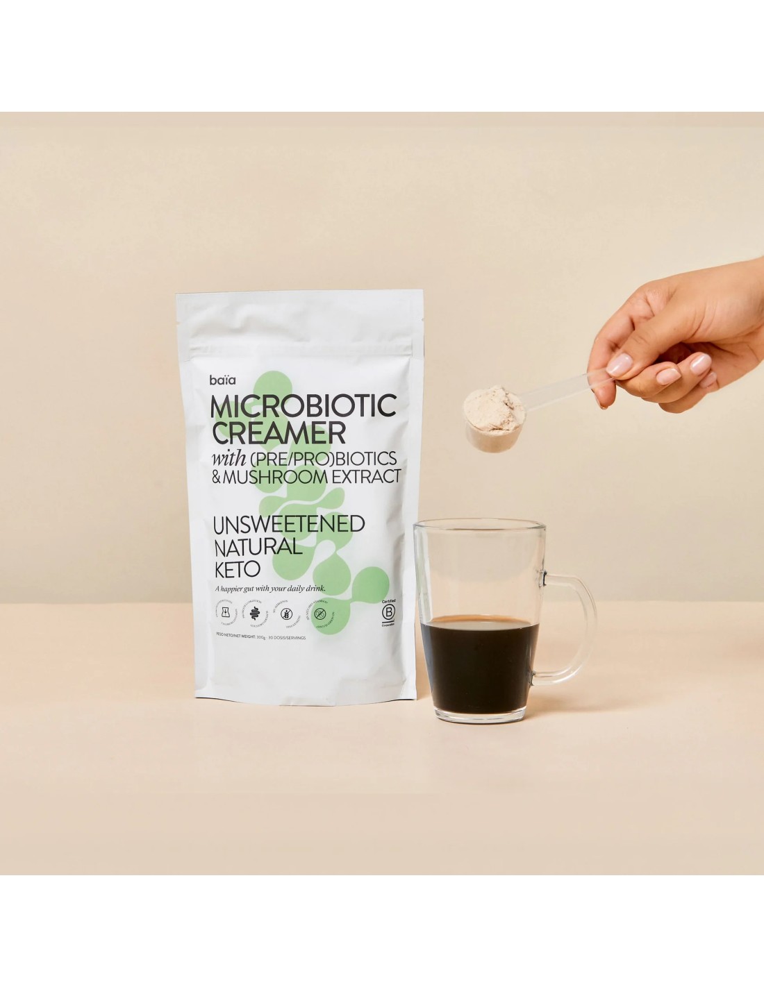 Microbiotic Creamer® es un complemento alimenticio en polvo diseñado para mejorar la salud digestiva de forma sencilla y eficaz, integrándose fácilmente en tu rutina diaria. Desarrollado por farmacéuticos y nutricionistas, combina lo mejor de la ciencia y la naturaleza en un solo producto.