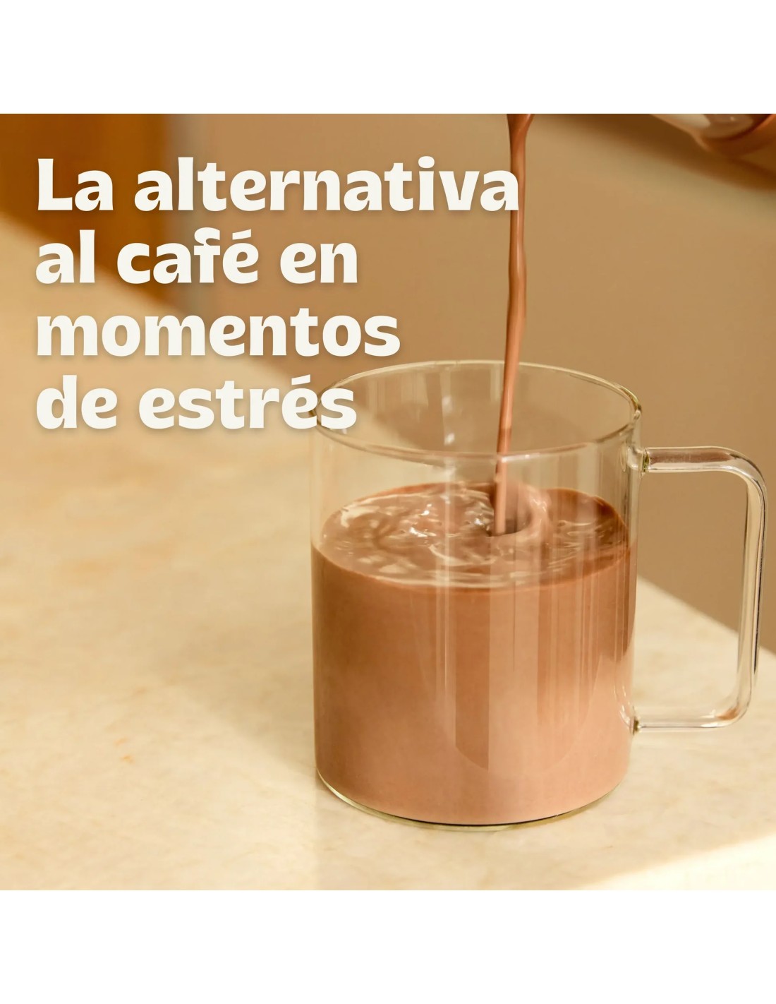 Con un delicioso sabor a chocolate, sin azúcares añadidos ni edulcorantes, se integra fácilmente en la rutina diaria como alternativa al café en momentos de alta demanda mental.