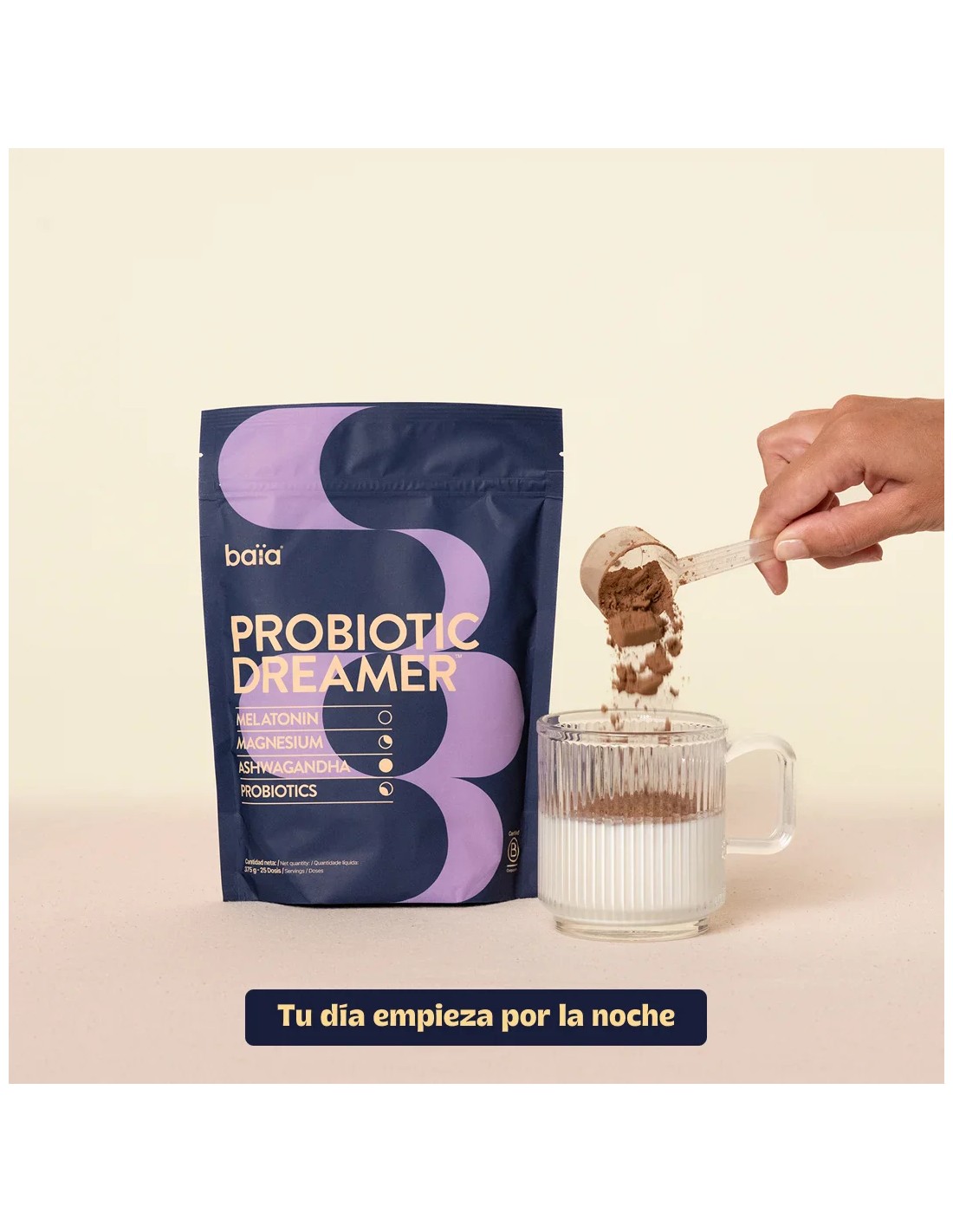 Probiotic Dreamer™ es un complemento alimenticio en polvo diseñado para mejorar la calidad del sueño de forma natural, actuando sobre el eje intestino-cerebro. Su fórmula combina ingredientes patentados que trabajan en sinergia para ayudar a conciliar el sueño más rápido, prolongarlo y favorecer un descanso más profundo y reparador.