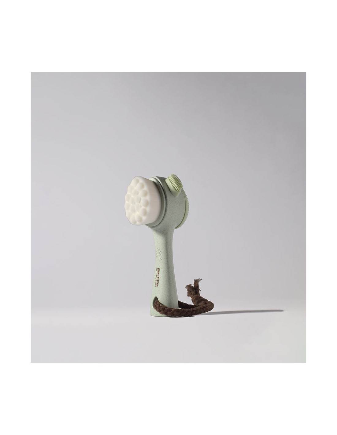 Fabricado con fibras de trigo y materiales respetuosos, combina tres superficies distintas para limpiar, exfoliar y tratar zonas específicas. Mejora la textura de la piel, potencia su luminosidad y favorece la absorción de los cosméticos aplicados posteriormente. Su packaging es 100% cartón certificado FSC.