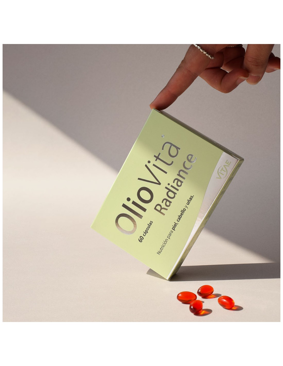 OlioVita Radiance es un complemento alimenticio de nutricosmética formulado con aceite de espino amarillo, naturalmente rico en omega 7, 3, 6 y 9, junto al exclusivo complejo antioxidante SevenAX®.