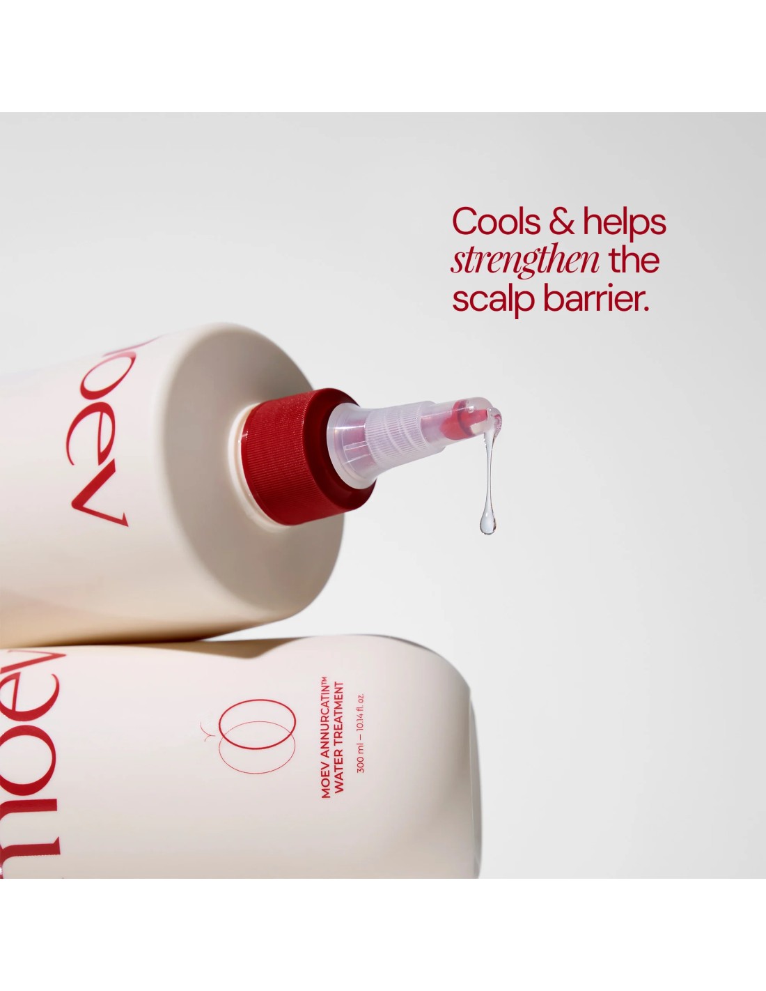 MOEV Annurcatin Water Treatment, es un tratamiento capilar de textura ligera tipo agua con efecto “steam-pack” que actúa rápidamente sobre el cabello y el cuero cabelludo. Incorpora la tecnología exclusiva Annurcatin™ junto con proteínas de trigo, biotina y un complejo de aminoácidos (PPT + LPP) que ayudan a fortalecer la fibra capilar, mejorar la elasticidad y mantener el cabello en mejores condiciones.