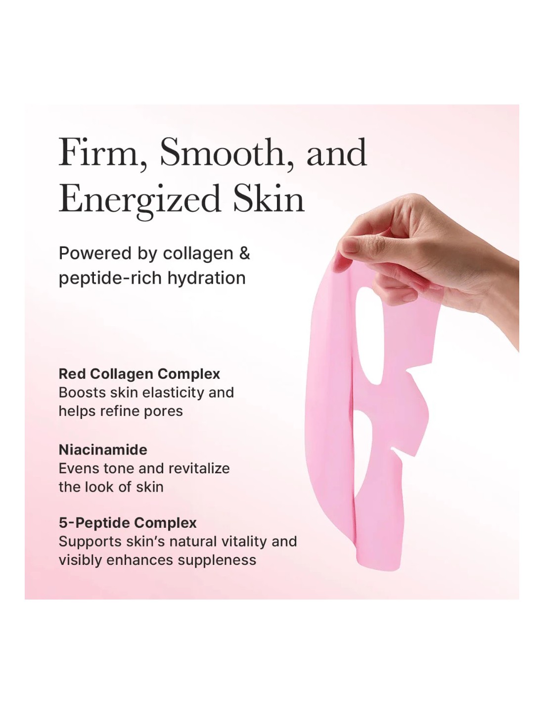 Mascarilla facial en tejido con innovadora textura tipo gel que se adapta perfectamente al rostro, favoreciendo una absorción óptima de los activos. Formulada con colágeno, extractos botánicos y agentes humectantes, proporciona hidratación profunda, mejora la elasticidad y deja la piel más suave, luminosa y revitalizada desde la primera aplicación.